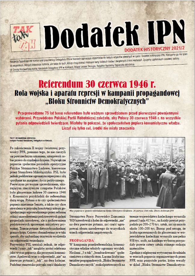 27 czerwca 2021 r. w „Tygodniku eM” ukazał się artykuł dr Marzeny Grosickiej z Referatu Badań Historycznych IPN w Kielcach, na temat referendum z 30 czerwca 1946 r. na przykładzie województwa kieleckiego.