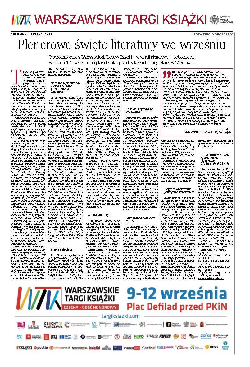 Warszawskie Targi Książki – dodatek IPN do „Rzeczpospolitej”, 9 września 2021 Pliki do pobrania Warszawskie Targi Książki – dodatek IPN do „Rzeczpospolitej”, 9 września 2021 (pdf, 2.23 MB) 09.09.2021 08:34