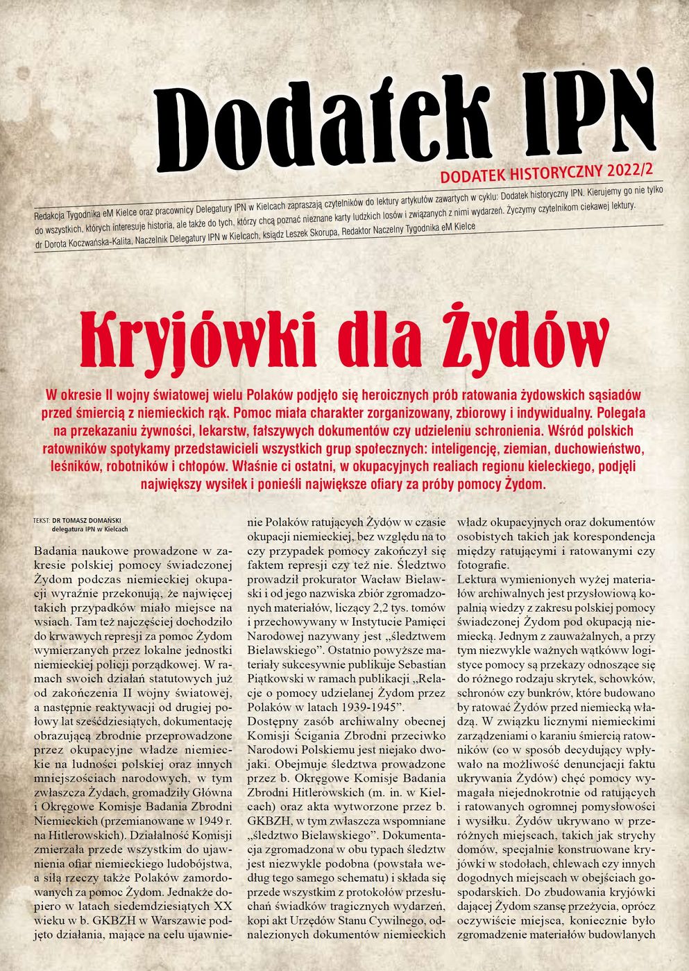W związku z Narodowym Dniem Pamięci Polaków ratujących Żydów pod okupacją niemiecką (24 marca) w „Tygodniku eM” ukazał się dodatek historyczny z artykułem dr. Tomasza Domańskiego z Referatu Badań Historycznych IPN w Kielcach, poświęcony polskim chłopom, którzy w czasie II wojny światowej podjęli największy wysiłek i ponieśli największe ofiary za próby pomocy Żydom.