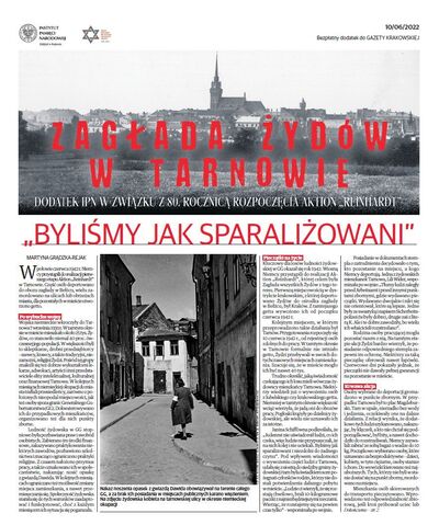 W połowie czerwca 1942 r. Niemcy przystąpili do realizacji pierwszego etapu Aktion „Reinhardt” w Tarnowie. Część osób deportowano do obozu zagłady w Bełżcu, wiele zamordowano na ulicach lub obrzeżach miasta, dla pozostałych utworzono getto. - „Zdawali sobie sprawę, że Żydzi zostaną wkrótce zamordowani”