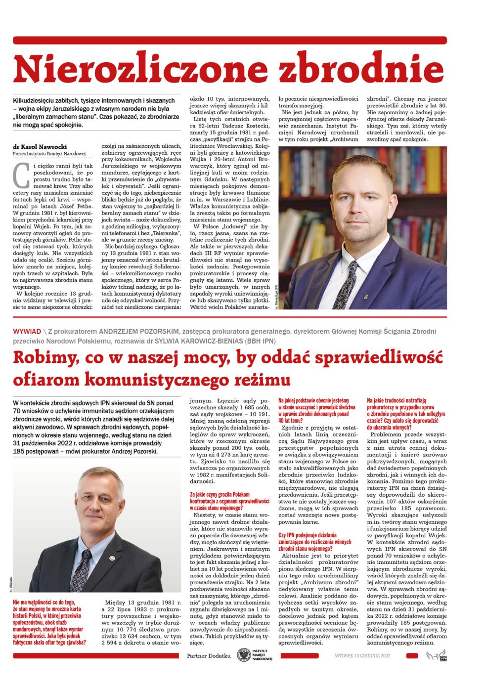 - Wywiad z prok. Andrzejem Pozorskim, dyrektorem Głównej Komisji Ścigania zbrodni przeciwko Narodowi Polskiemu, zastępcą Prokuratora Generalnego: „Robimy co w naszej mocy, by oddać sprawiedliwość ofiarom komunistycznego reżimu”
