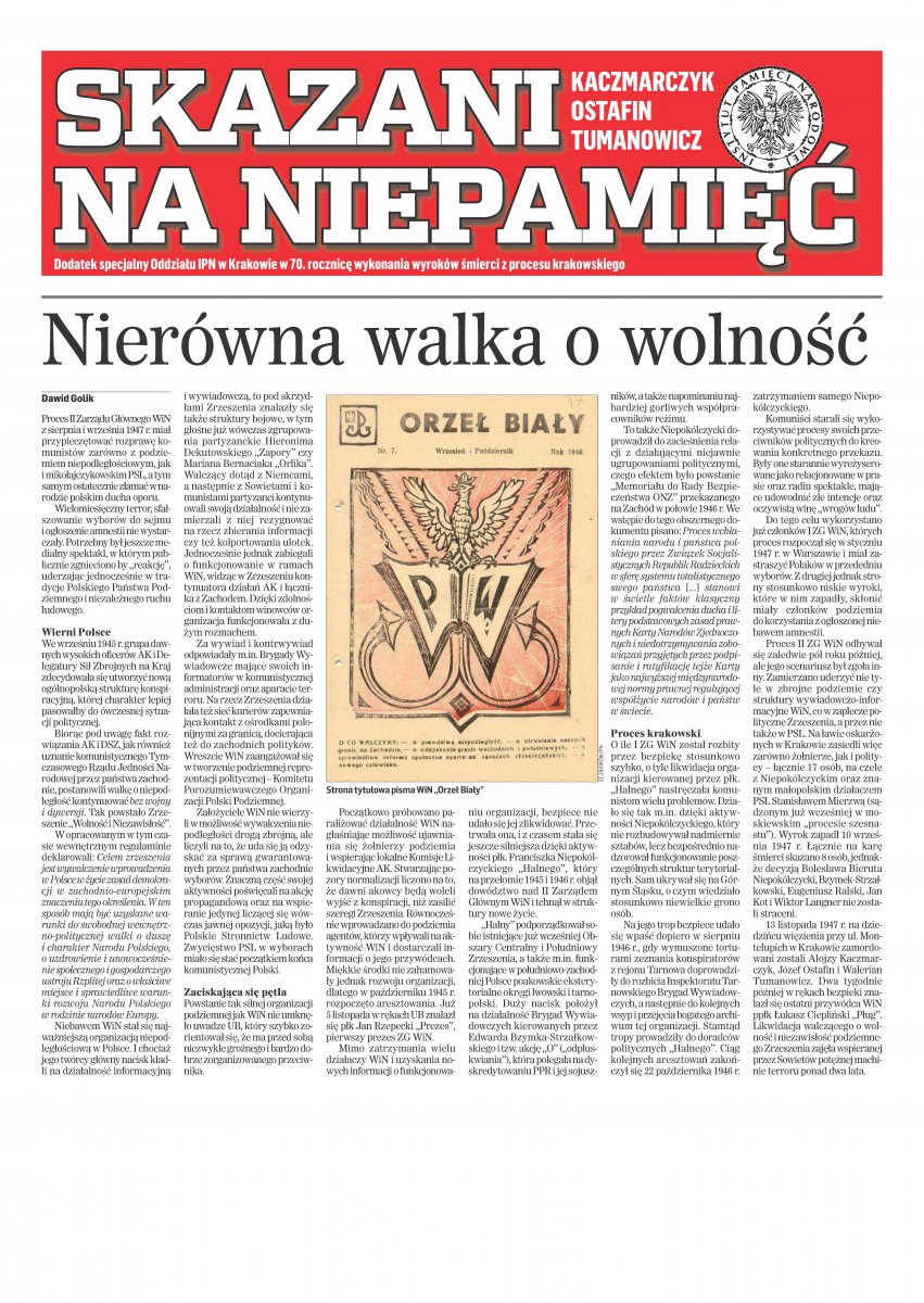 „Skazani na niepamięć” – „Dziennik Polski”, 13.10.2017 Pliki do pobrania „Skazani na niepamięć” – „Dziennik Polski”, 13.10.2017 (pdf, 933.96 KB) 13.11.2017 12:00
