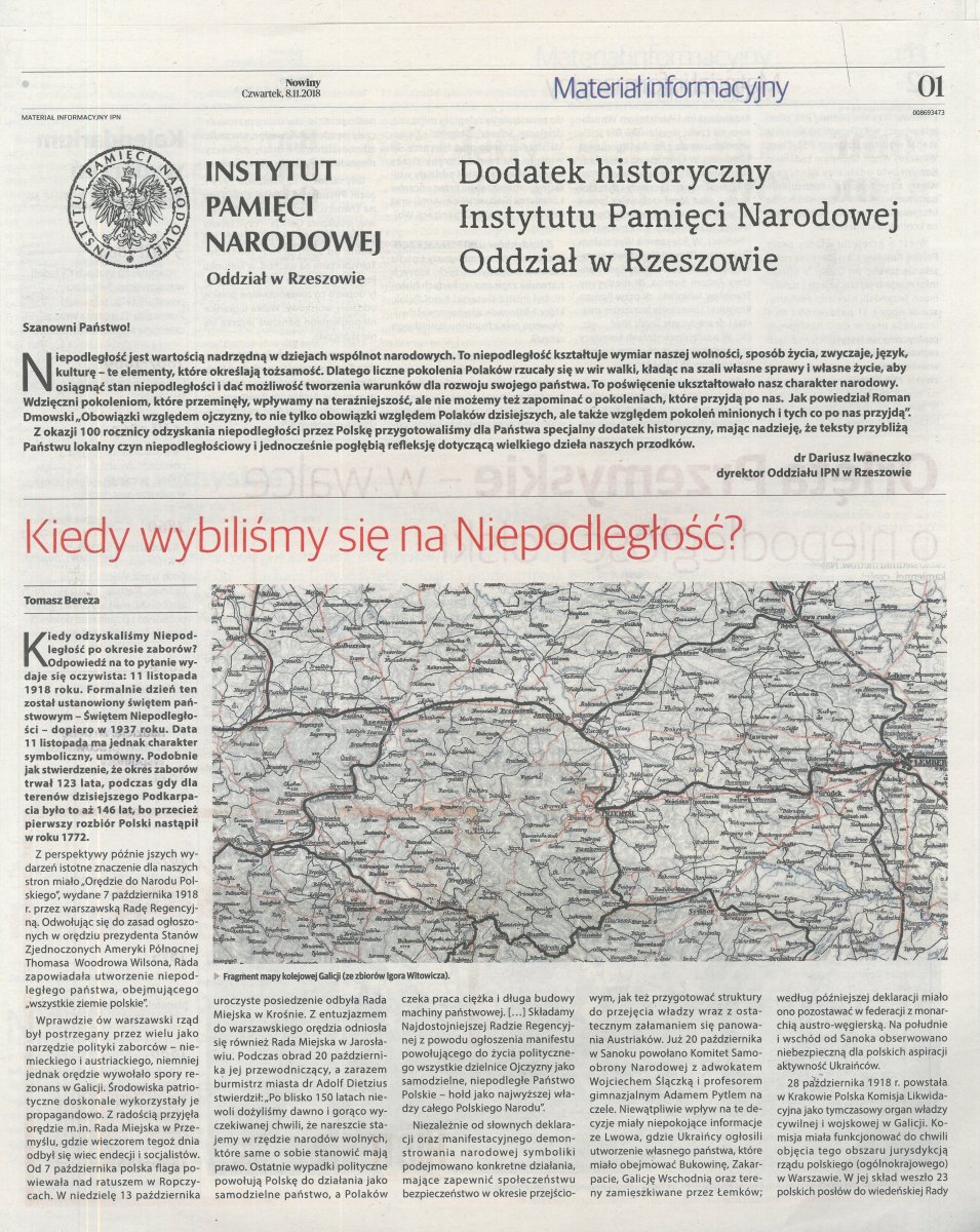 Dodatek historyczny Instytutu Pamięci Narodowej Oddział w Rzeszowie – „Nowiny”, 8 listopada 2018