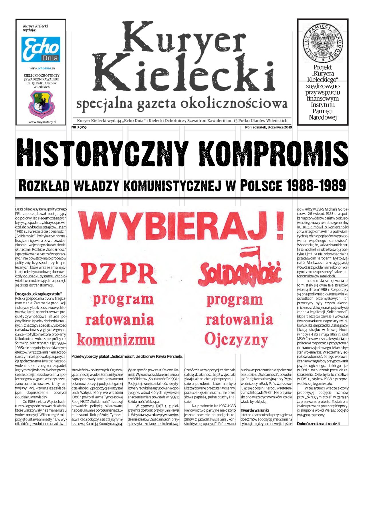 Numer „Kuryera Kieleckiego”, przygotowany z okazji 30. rocznicy wyborów 4 czerwca 1989 r., poświęcony został sytuacji społeczno-politycznej w Polsce w drugiej połowie lat 80, obradom Okrągłego Stołu, a także działalności NSZZ „Solidarność” i innych organizacji opozycyjnych regionu świętokrzyskiego w latach 1988-1989.