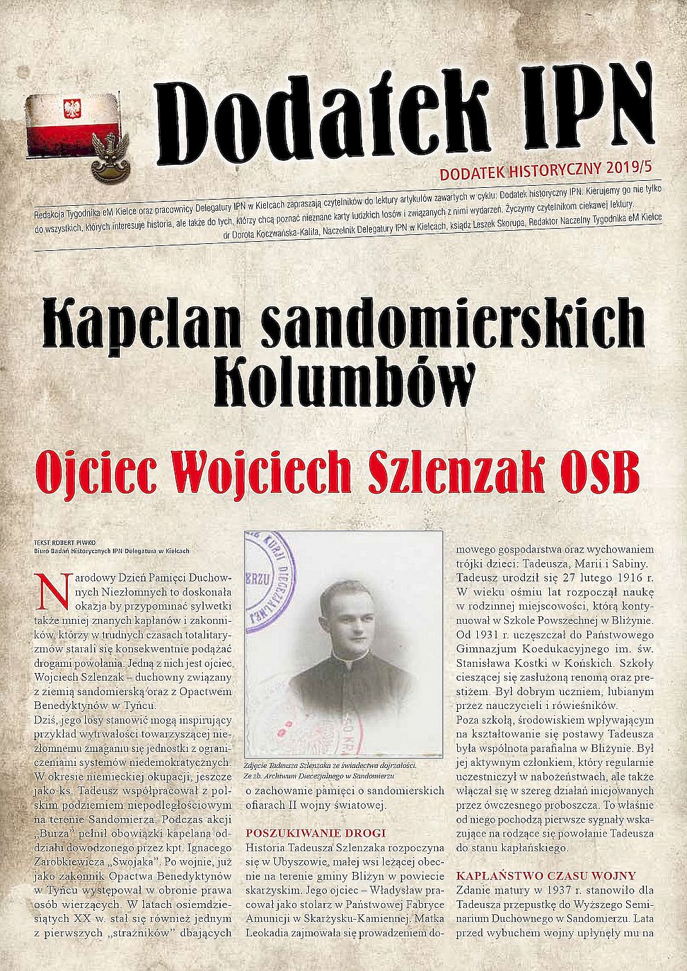 W ramach Narodowego Dnia Pamięci Duchownych Niezłomnych (19 października) na łamach „Tygodnika eM” ukazał się artykuł Roberta Piwko z Biura Badań Historycznych delegatury IPN w Kielcach poświęcony ojcu Wojciechowi Szlenzakowi, duchownemu związanemu z ziemią sandomierską oraz z opactwem benedyktynów w Tyńcu.