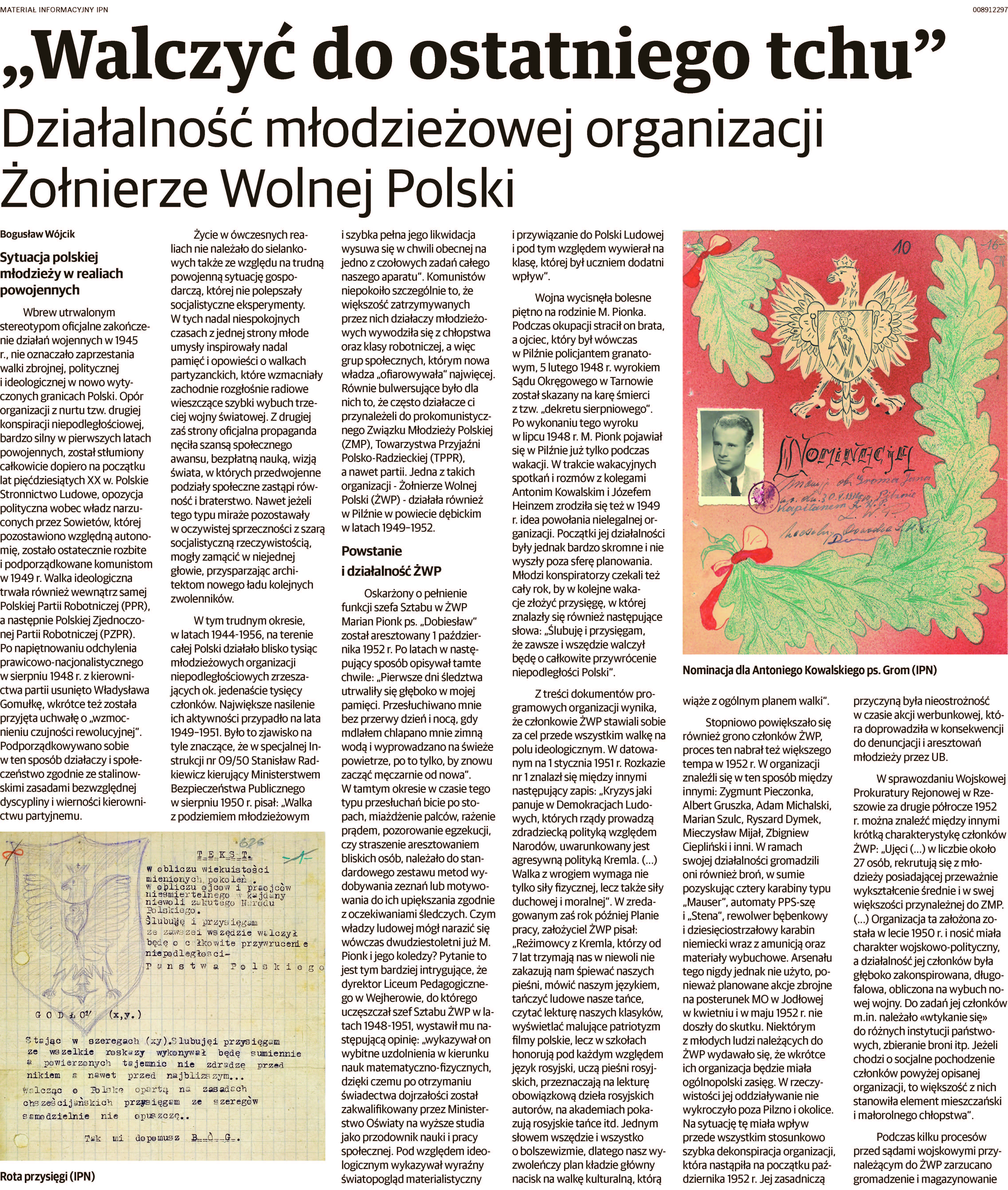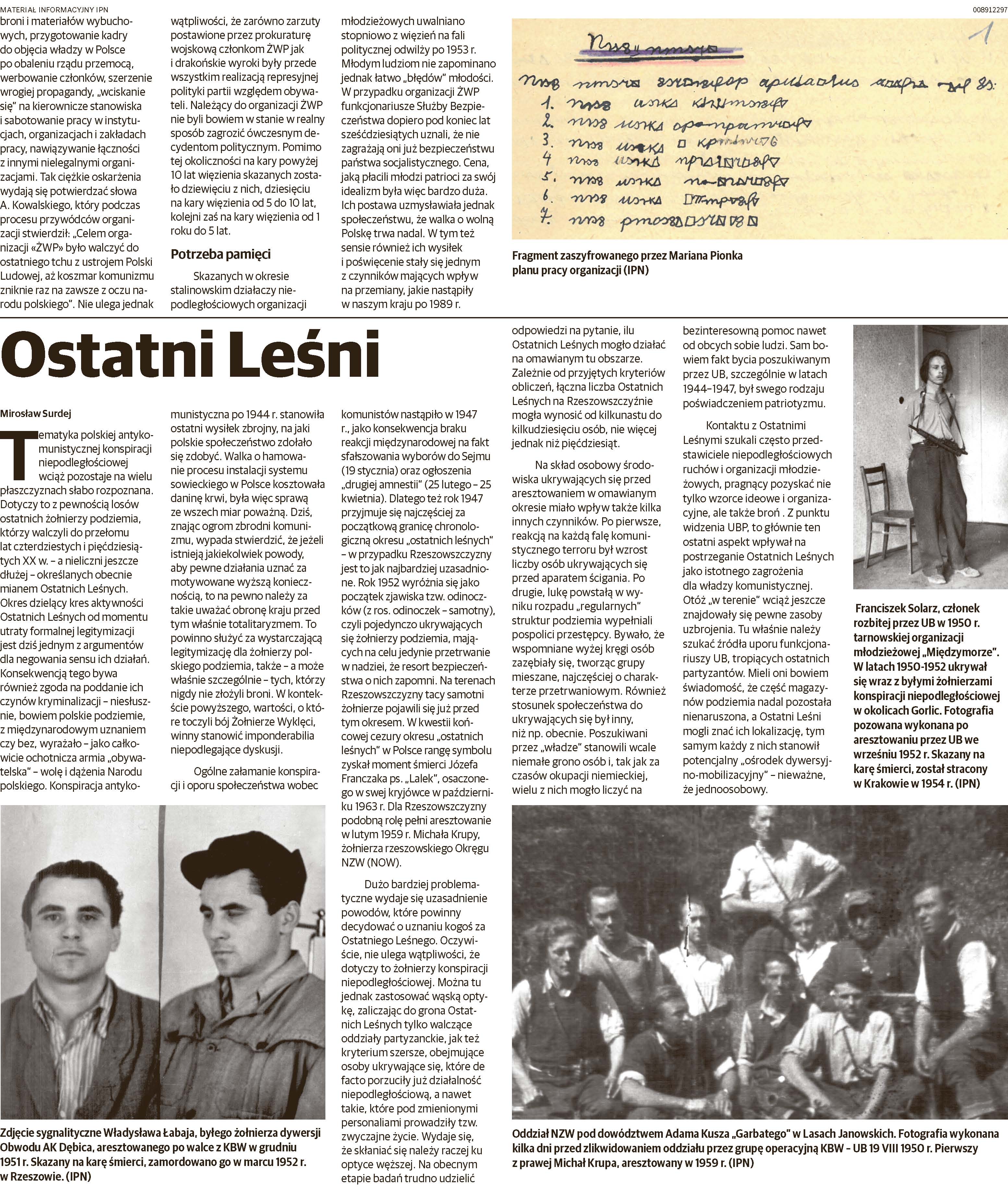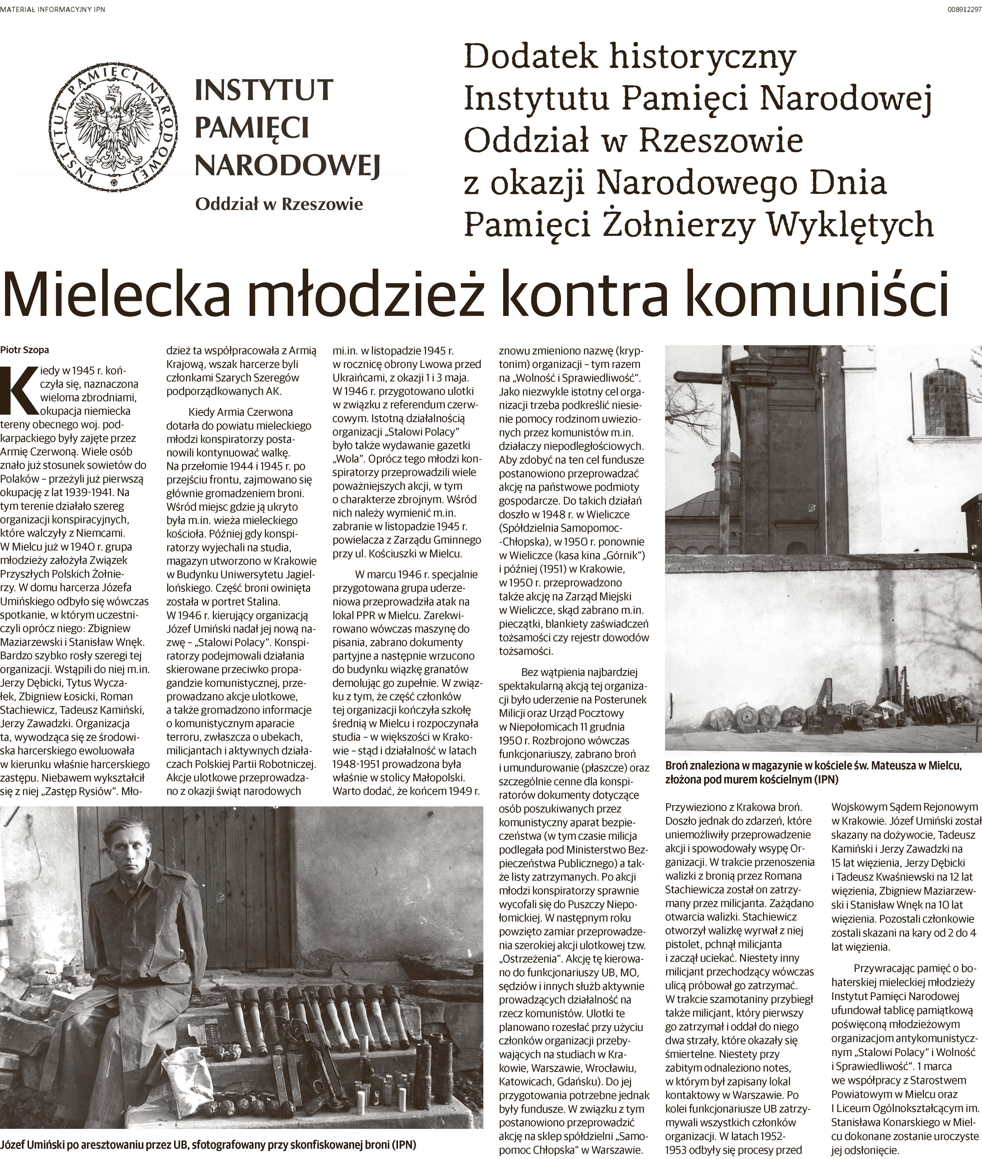 Prezentujemy Dodatek Historyczny poświęcony Żołnierzom Niezłomnym i działaczom konspiracji młodzieżowych, przygotowany przez historyków Instytutu Pamieci Narodowej Oddział w Rzeszowie z okazji obchodów Narodowego Dnia Pamięci Żołnierzy Wyklętych.