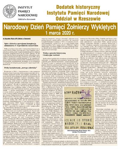 1 marca 2020 r. po raz kolejny obchodzimy Narodowy Dzień Pamięci Żołnierzy Wyklętych. Dziś polecamy dodatek historyczny przygotowany przez IPN Oddział w Rzeszowie, poświęcony historii powojennej konspiracji i walce polskiego podziemia antykomunistycznego z okupantem. Dodatek ukazał się 27 lutego 2020 w „Super Nowościach” i „Nowinach”.