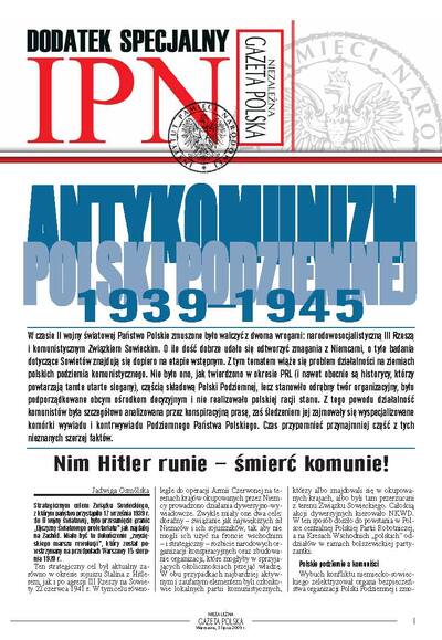Pliki do pobrania Antykomunizm Polski podziemnej 1939-1945 - „Niezależna Gazeta Polska”, 3 lipca 2009 (pdf, 575.78 KB)