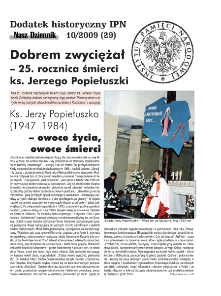 Pliki do pobrania Dobrem zwyciężał – 25. rocznica śmierci ks. Jerzego Popiełuszki - „Nasz Dziennik”, 10/2009 (29) (pdf, 4.34 MB)