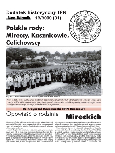 Pliki do pobrania Polskie rody: Mireccy, Kasznicowie, Celichowscy - „Nasz Dziennik”, 12/2009 (31) (pdf, 5.03 MB)
