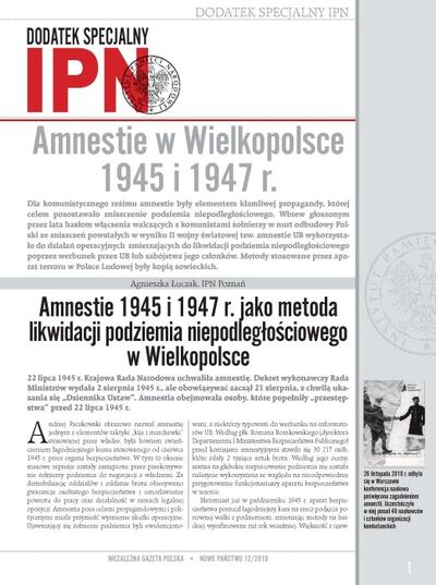 Pliki do pobrania Amnestie w Wielkopolsce 1945 i 1947 r. – „Nowe Państwo – Niezależna Gazeta Polska”, 12/2010 (pdf, 5.83 MB)