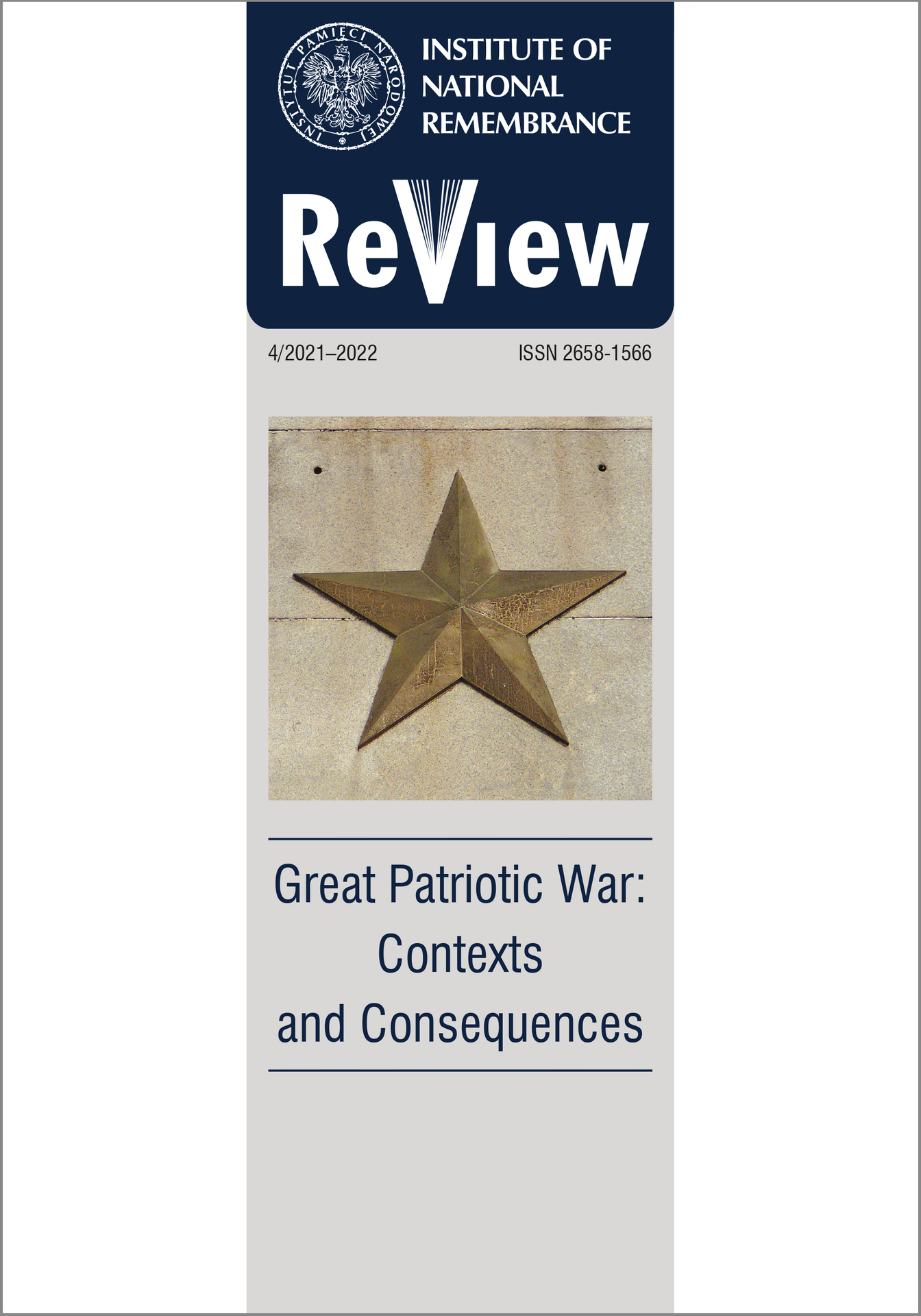 The leading theme of the fourth issue of the "Institute of National Remembrance Review" is the Great Patriotic War of Soviet Union, especially its contemporary and recent narrative and propaganda contexts. The issue contains also the presentation of the one of the most important Polish institutions of remebrance: Katyn Museum in Warsaw, the branch of the Polish Army Museum.