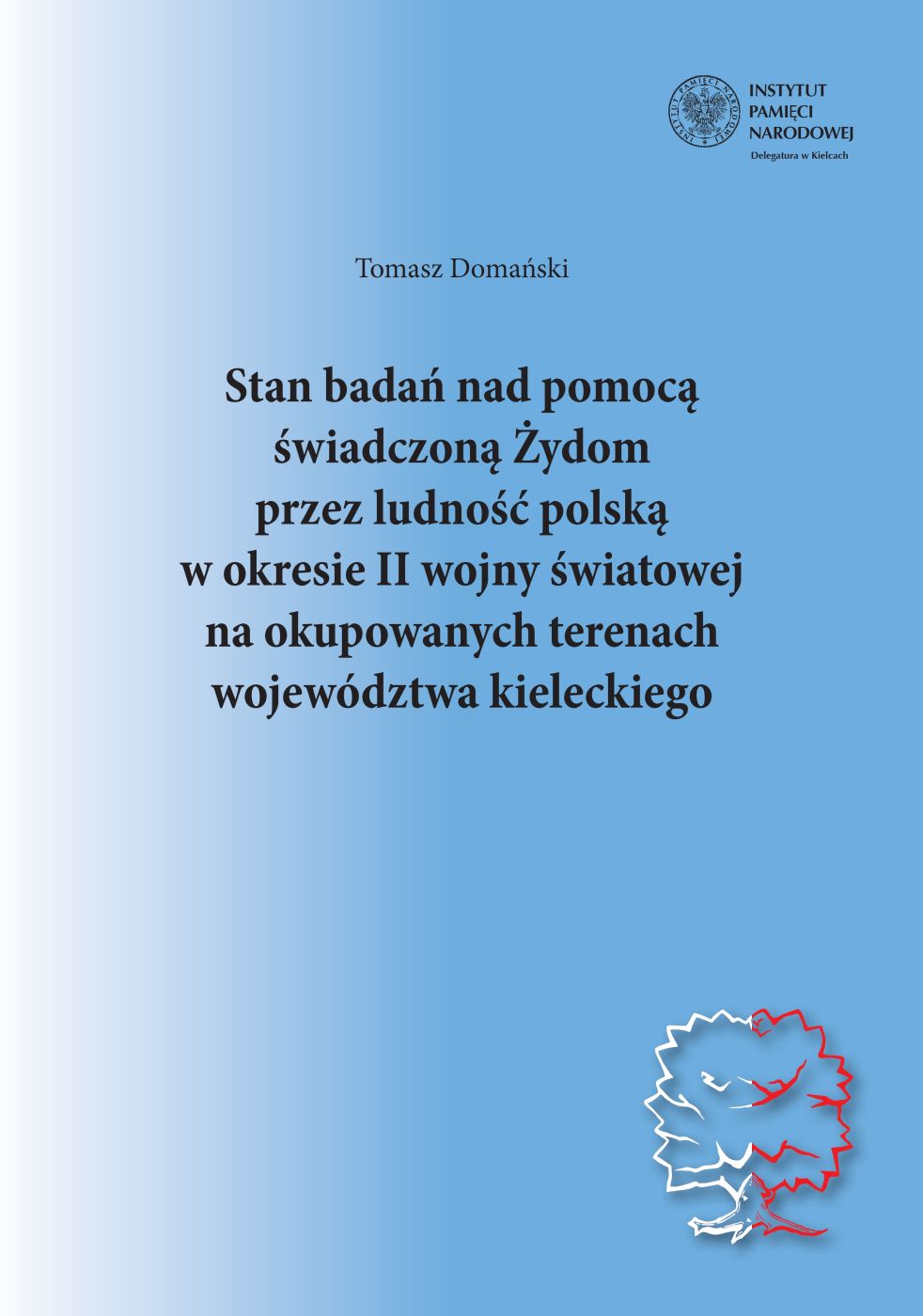 W swoim opracowaniu dr Tomasz Domański analizuje główne kierunki podejmowanych dotychczas badań w obszarze pomocy Żydom, świadczonej przez ludność polską na okupowanych terenach województwa kieleckiego w granicach z 31 sierpnia 1939 r. Autor wnikliwie i wielowątkowo analizuje obecność problematyki pomocowej z terenu województwa kieleckiego w opracowaniach ogólnopolskich, z jednoczesnym opisem dorobku badań regionalnych. W książce szeroko omówiono stan piśmiennictwa na temat roli różnych warstw społecznych zaangażowanych w pomoc Żydom: Kościoła i duchowieństwa katolickiego, ziemiaństwa, chłopstwa. Ponadto dr Domański wskazał na perspektywę polską i żydowską w badaniach pomocowych oraz zaprezentował postulaty i kierunki dalszych poszukiwań źródłowych.