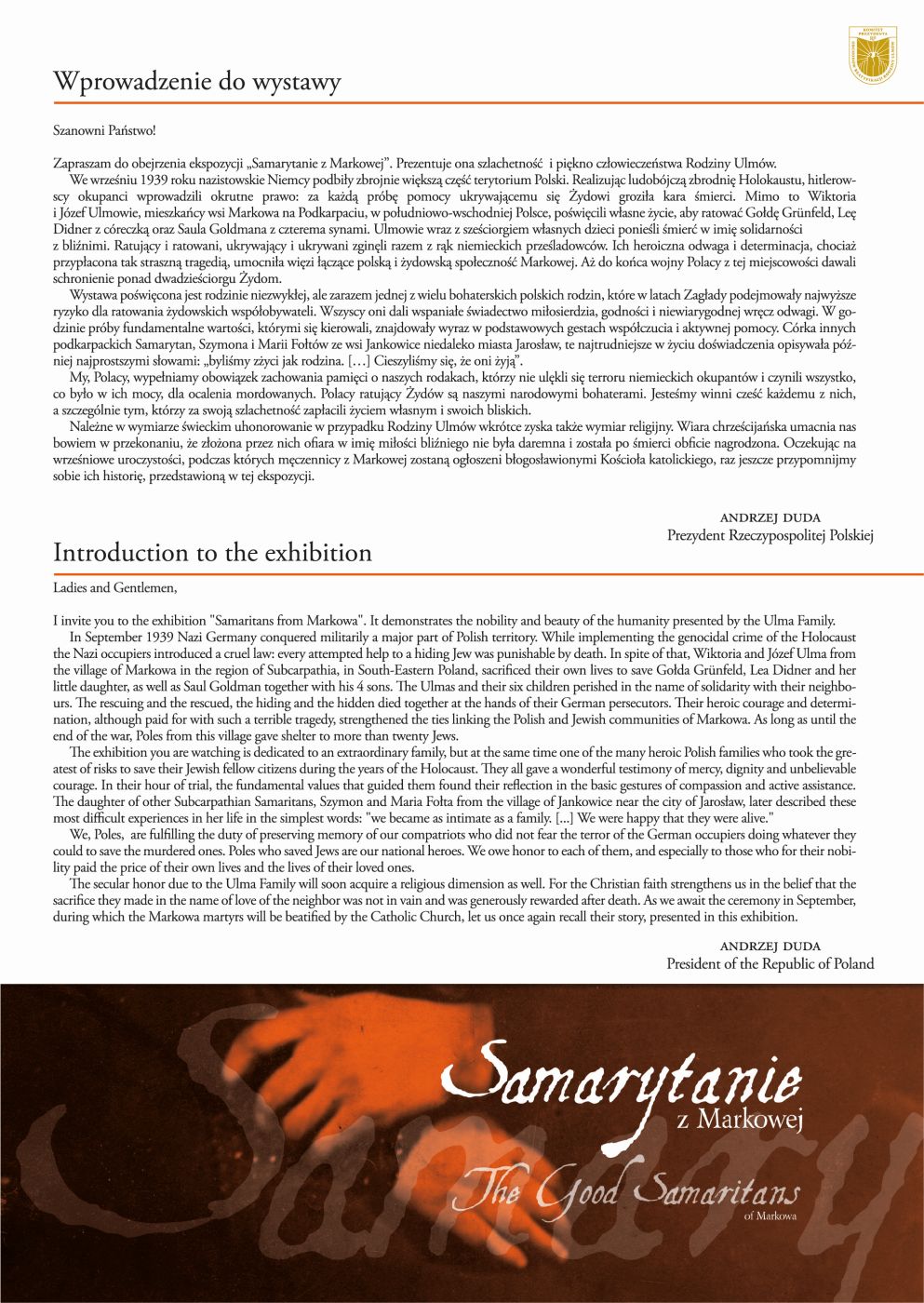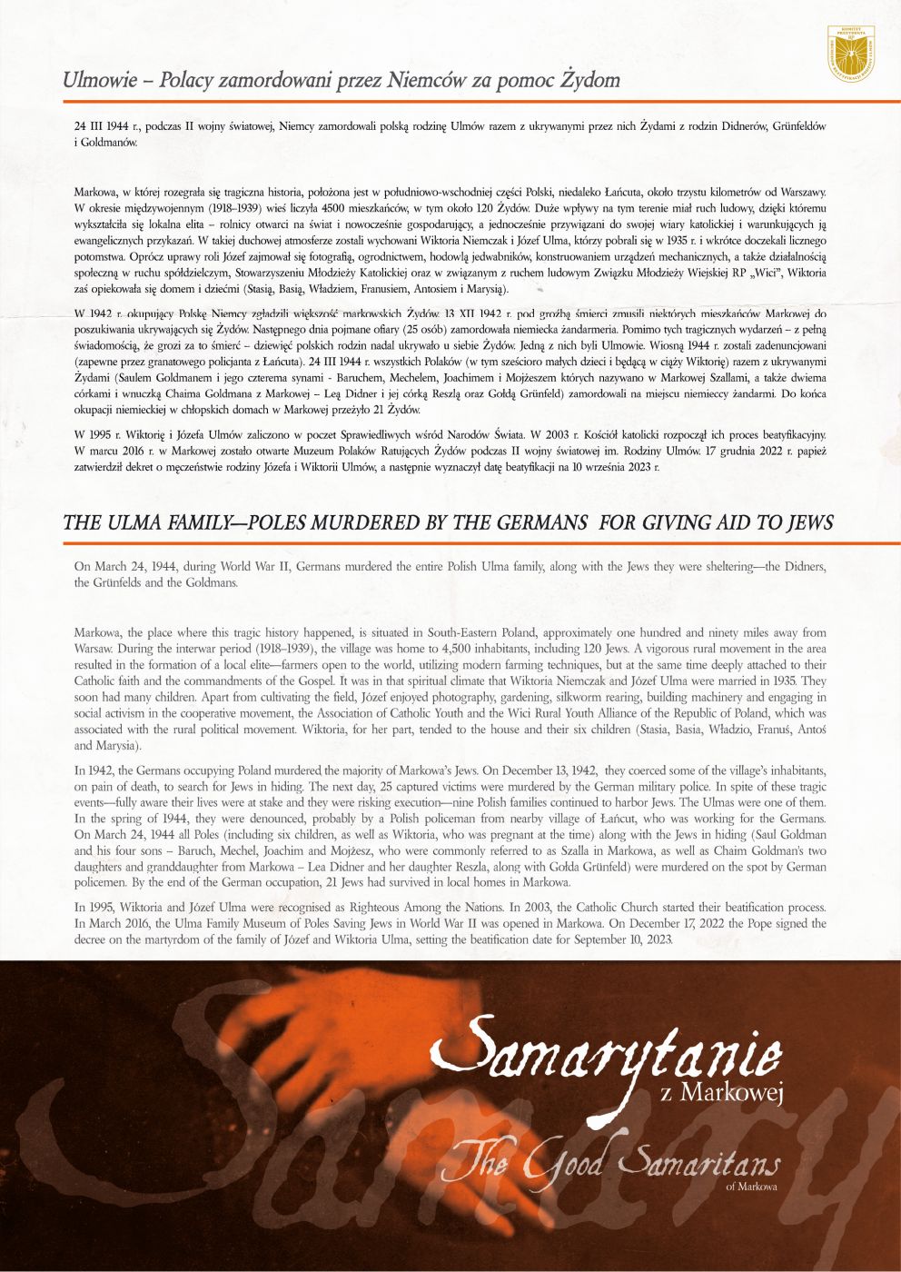 Wystawa „Samarytanie z Markowej. Ulmowie – Polacy zamordowani przez Niemców za pomoc Żydom”