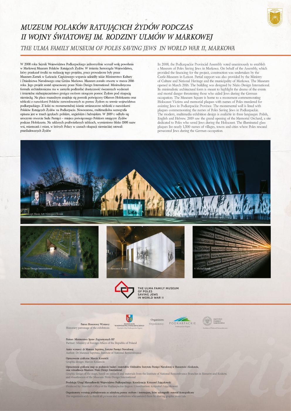 Po raz pierwszy wystawa została zaprezentowana 24 marca 2010 r. w Warszawie (następnie w licznych polskich miastach i wielu miejscach za granicą). W zmienionym kształcie (nowa grafika i uzupełnione zdjęcia) wystawa powstała w marcu 2016 roku w związku z otwarciem Muzeum Polaków Ratujących Żydów podczas II wojny światowej im. Rodziny Ulmów w Markowej i jest wspólnym dziełem Oddziału Instytutu Pamięci Narodowej w Krakowie oraz Urzędu Marszałkowskiego Województwa Podkarpackiego. Jej autorem jest dr Mateusz Szpytma, były szef Muzeum im. Rodziny Ulmów, a obecnie zastępca prezesa Instytutu Pamięci Narodowej.