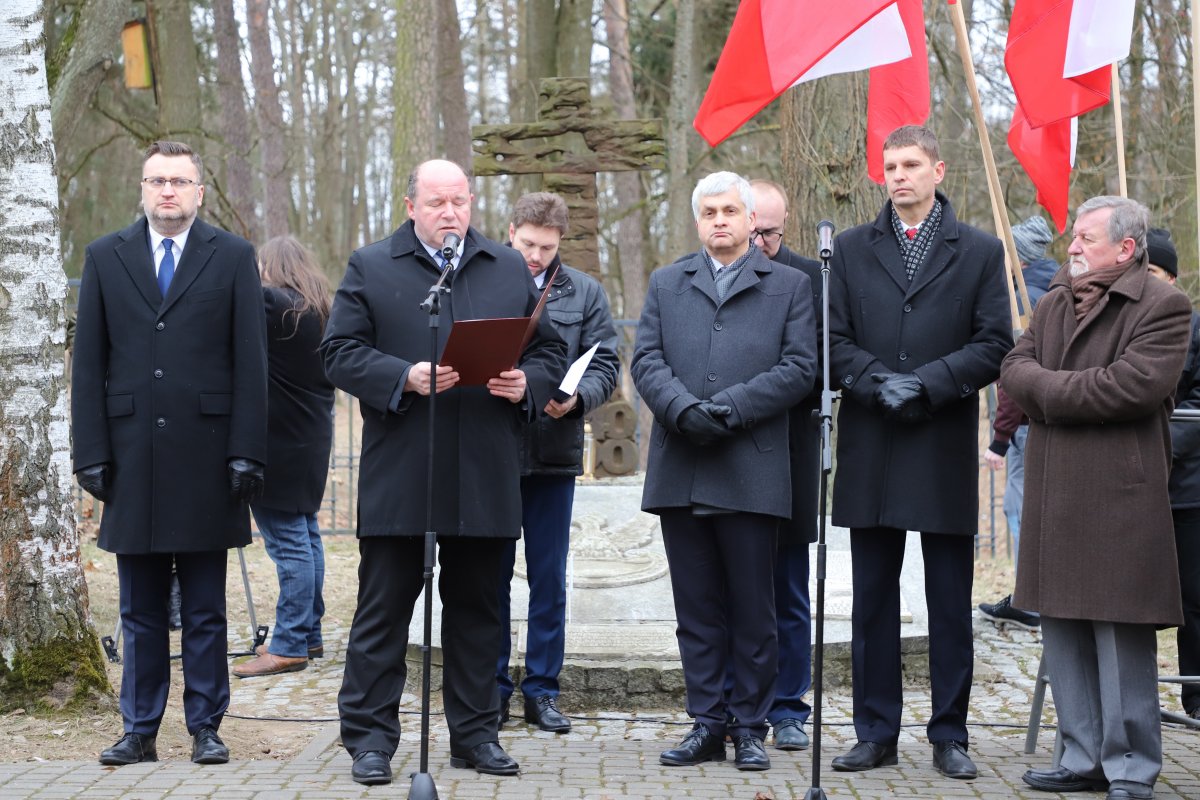 Dyrektor Oddziału IPN w Białymstoku dr hab. Piotr Kardela odczytał list dr Jarosława Szarka prezesa IPN skierowany do uczestników uroczystości -