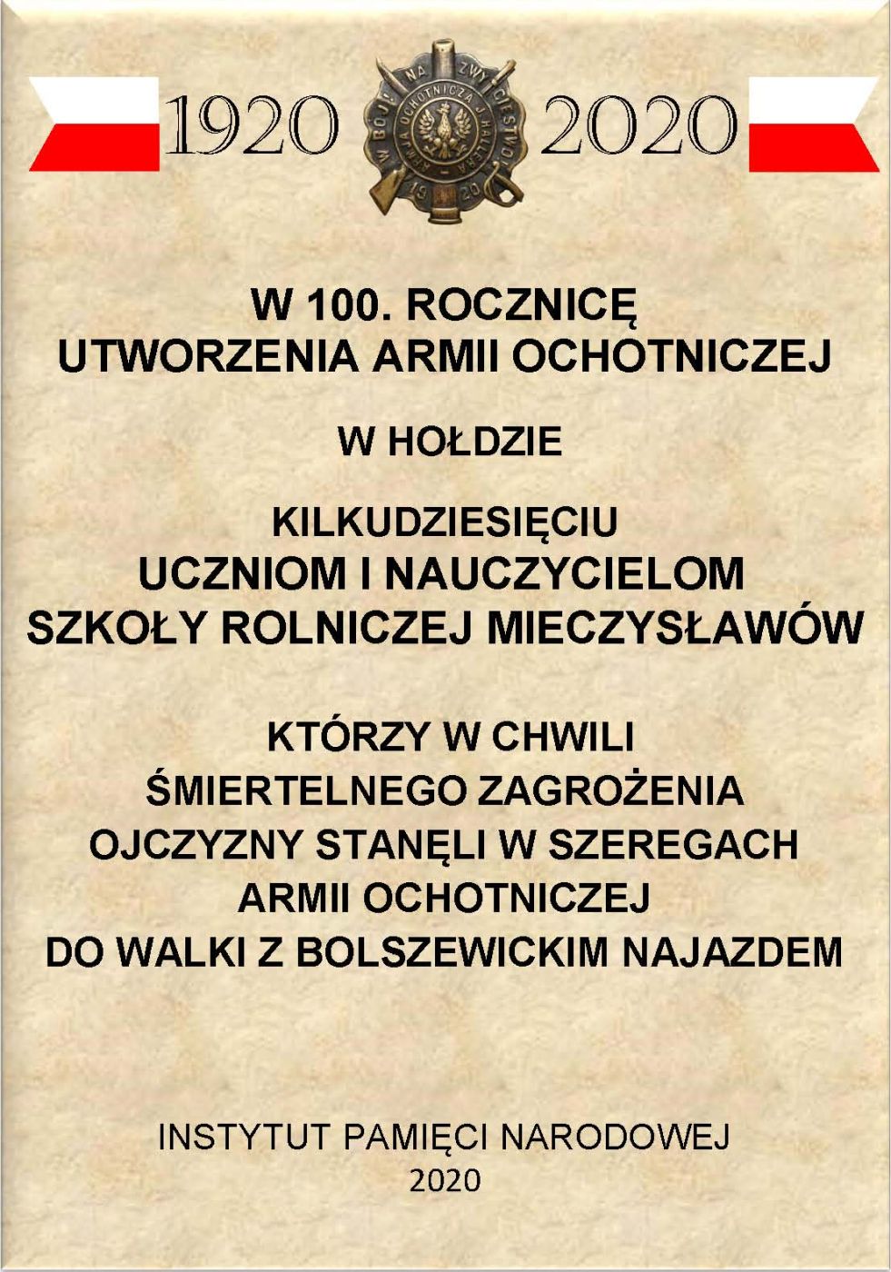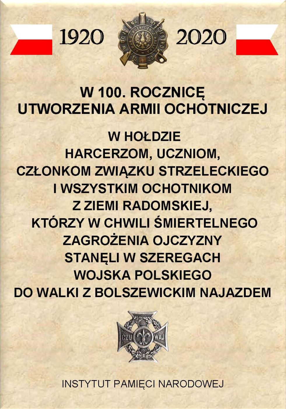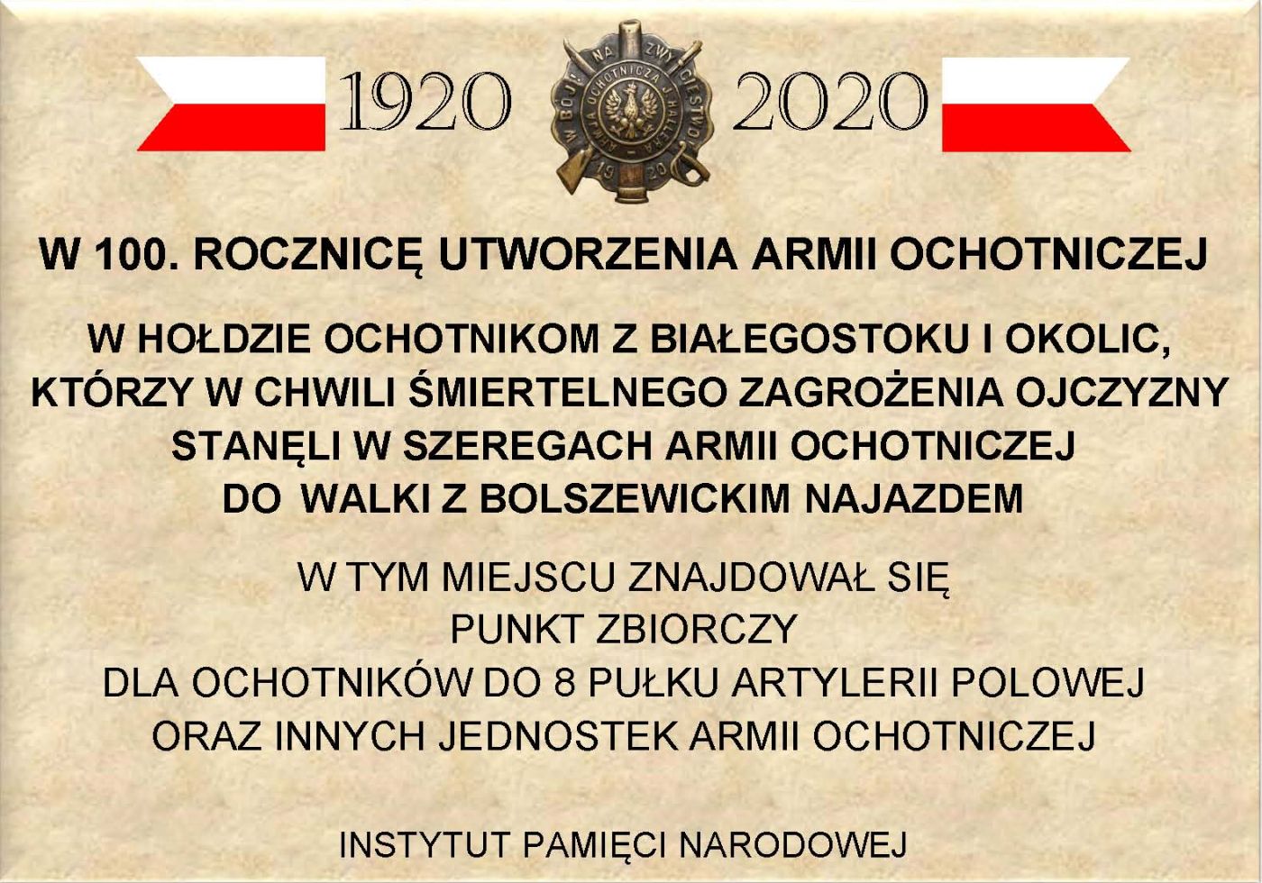 W setną rocznicę zwycięstwa nad bolszewikami w Bitwie Warszawskiej 1920 r. Instytut Pamięci Narodowej upamiętni żołnierzy Armii Ochotniczej gen. Józefa Hallera 1920 r. poprzez odsłonięcie tablic memoratywnych w miejscach komisji werbunkowych.