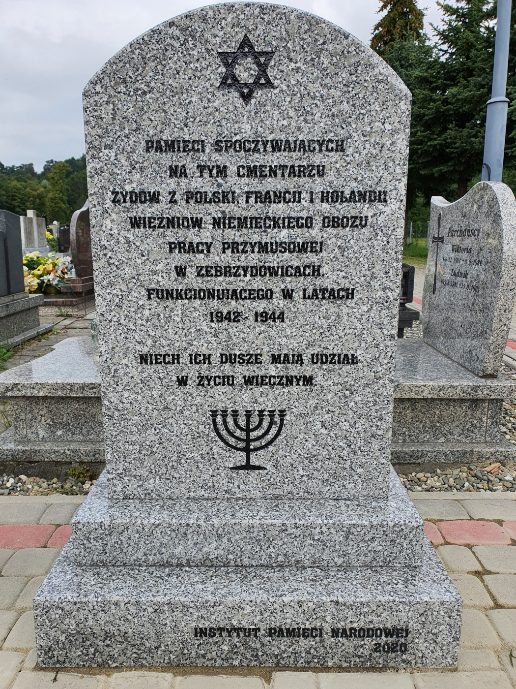 Na cmentarzu parafialnym w Zebrzydowicach wykonano symboliczny nagrobek poświęcony Żydom z Polski, Francji i Holandii – więźniom niemieckiego obozu pracy przymusowej w Zebrzydowicach funkcjonującego w latach 1942-1944.