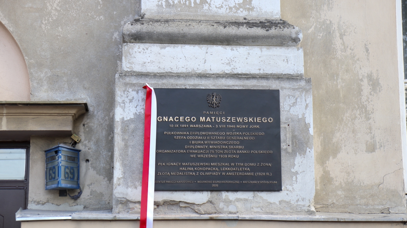 Uroczystość odbyła się przy ul. Filtrowej 69, gdzie przed laty mieszkał bohater polskiej niepodległości, jeden z najwybitniejszych, a zarazem najbardziej niedocenianych polityków polskich XX wieku, oraz jego żona, pierwsza dama polskiej lekkoatletyki w II Rzeczypospolitej. Inicjatywę uczczenia pierwszej polskiej złotej medalistki olimpijskiej Haliny Konopackiej oraz współtwórcy polskiego wywiadu i mministra skarbu płk. Ignacego Matuszewskiego zrealizowali wspólnie mieszkańcy kamienicy przy Filtrowej, Instytut Pamięci Narodowej i Wojskowe Biuro Historyczne przy wsparciu Miasta Stołecznego Warszawy.