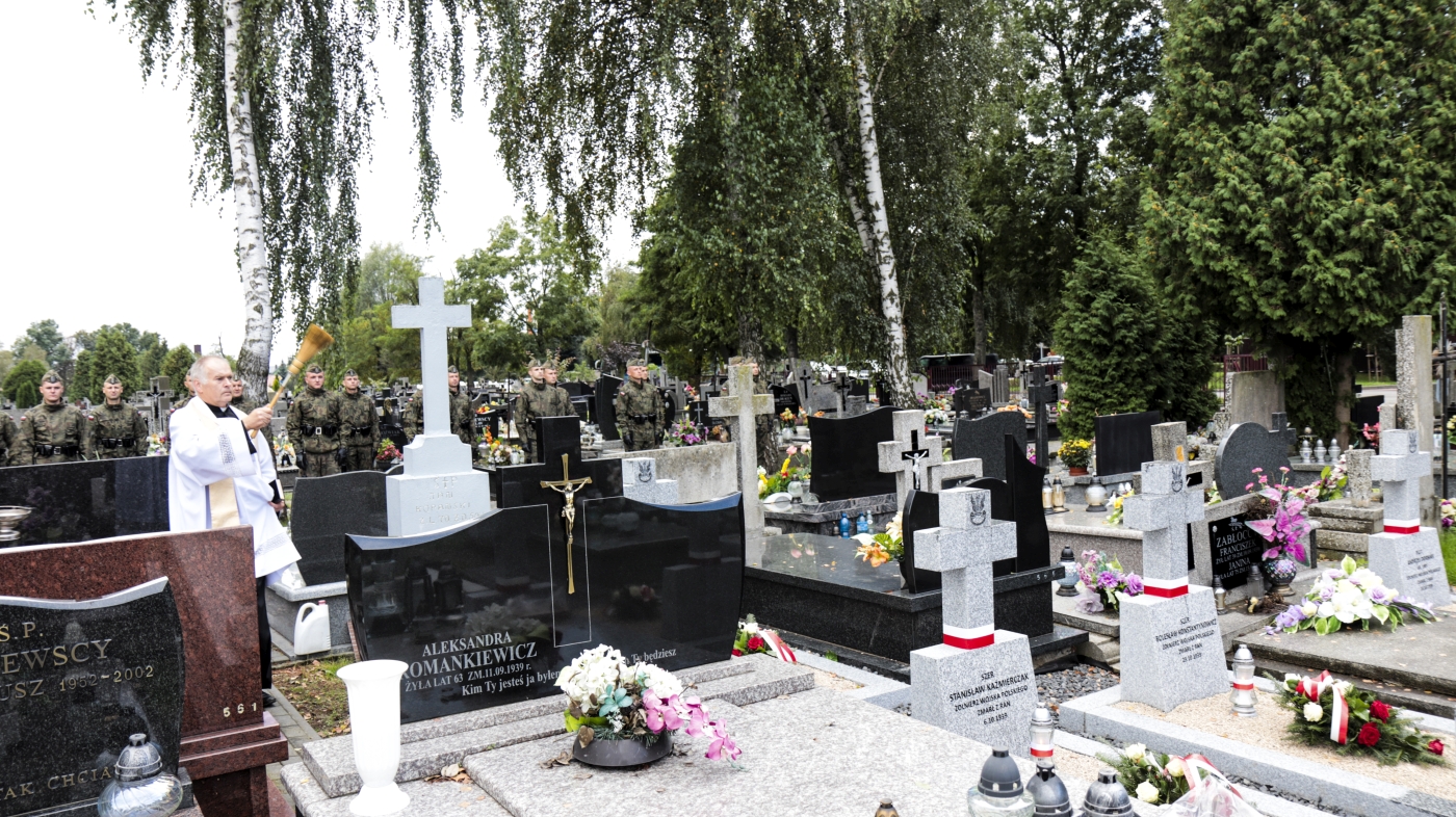 Zebrani przeszli sprzed kościoła na miejsce ceremonii wojskowej i poświęcenia nagrobków, gdzie odegrano hymn państwowy. Następnie odczytany został Apel Poległych oraz oddano salwę honorową, aby uczcić pamięć tych, którzy dopełnilidziejów polskiej walki o niepodległość i uczynili tę historię historią pełną. Na zakończenie uroczystości ks. kanonik Andrzej Kieliszek odmówił modlitwę poświęcenia grobów oraz dokonał poświęcenia 24 odnowionych mogił.