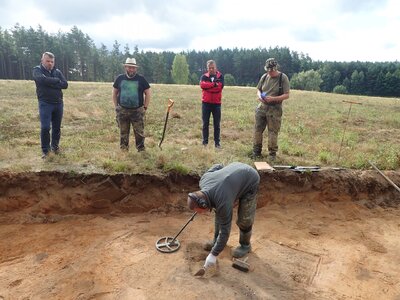 Jego szczątki było kompletne, ale przekopane przez detektorystów. Znaleziono przy nich scyzoryk, kieszeń z monetą prawdopodobnie 10 kopiejek.