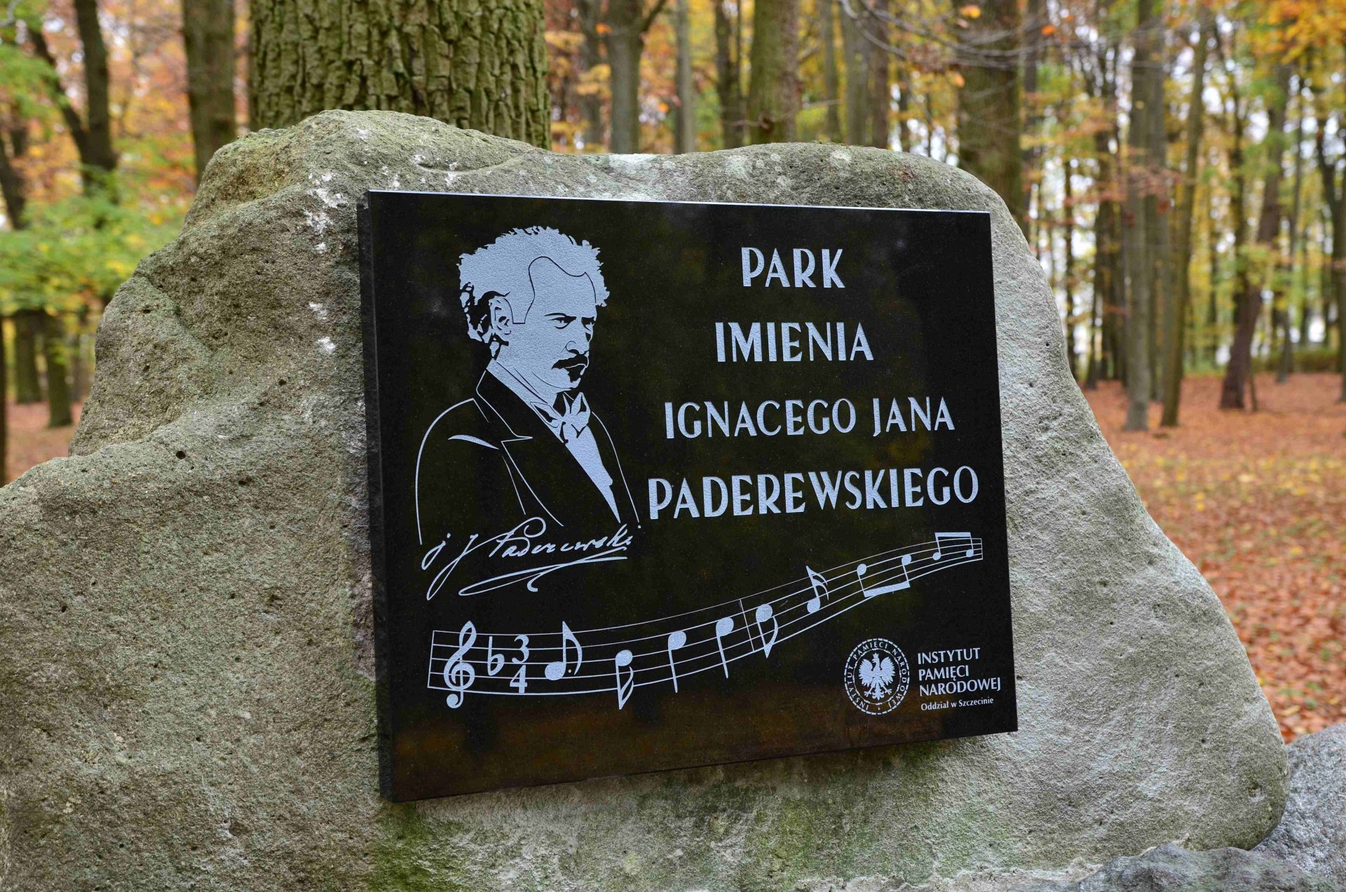 Z okazji 102. rocznicy odzyskania przez Polskę niepodległości w Goleniowie, w parku im. Ignacego Jana Paderewskiego, spotkali się przedstawiciele Urzędu Gminy i Miasta oraz oddziału Instytutu Pamięci Narodowej w Szczecinie. Podczas spotkania została uroczyście zaprezentowana tablica poświęcona jednemu z ojców niepodległości, Ignacemu Janowi Paderewskiemu. Nowa, wykonana z czarnego granitu, tablica została umieszczona na głazie narzutowym, zastępując starą drewnianą tabliczkę. Na tablicy umieszczono napis "Park imienia Ignacego Jana Paderewskiego", wizerunek artysty oraz zapis nutowy pierwszych taktów hymnu Polski.