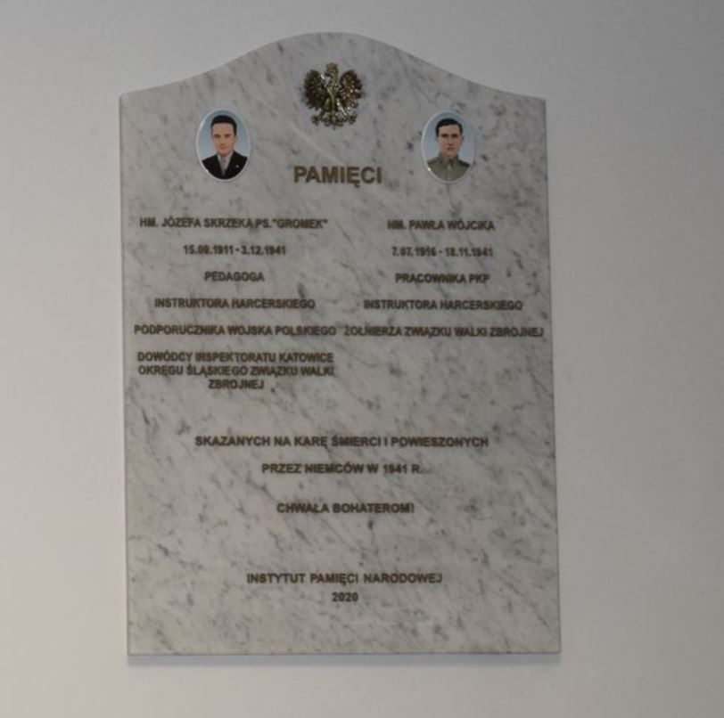 4 grudnia 2020 r. w Szkole Podstawowej nr 8 w Siemianowicach Śląskich, wchodzącej w skład miejscowego Zespołu Szkół Sportowych uczczono tablicą memoratywną Józefa Skrzeka i Pawła Wójcika. Hm. Józef Skrzek był pedagogiem, instruktorem harcerskim i podporucznikiem Wojska Polskiego, służącym między innymi w 3 pułku strzelców podhalańskich w Bielsku oraz dowódcą Inspektoratu Katowice Okręgu Śląskiego Związku Walki Zbrojnej. Hm. Paweł Wójcik natomiast pracował na kolei, był instruktorem harcerskim i żołnierzem ZWZ. W tym roku upłynęło 79 lat od śmierci obu bohaterów polskiego podziemia. 18 listopada i 3 grudnia 1941 r. na placu w Michałkowicach instruktorzy harcerscy, ppor. hm. Józef Skrzek ps. „Gromek“ oraz hm. Paweł Wójcik zostali powieszeni przez niemieckich okupantów.