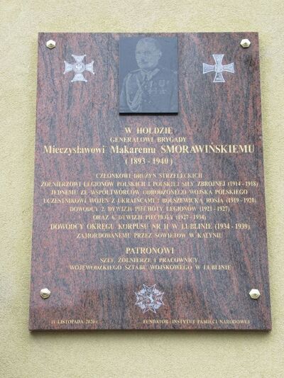 Oddziałowe Biuro Upamiętniania Walk i Męczeństwa w Lublinie ufundowało na budynku Wojewódzkiego Sztabu Wojskowego w Lublinie pamiątkową tablicę dedykowaną gen. dyw. Mieczysławowi Smorawińskiemu. Pierwotne plany przewidywały zorganizowanie uroczystości upamiętniających patrona WSzW jeszcze przed Świętem Niepodległości, ale zostały przesunięte w związku z epidemią.