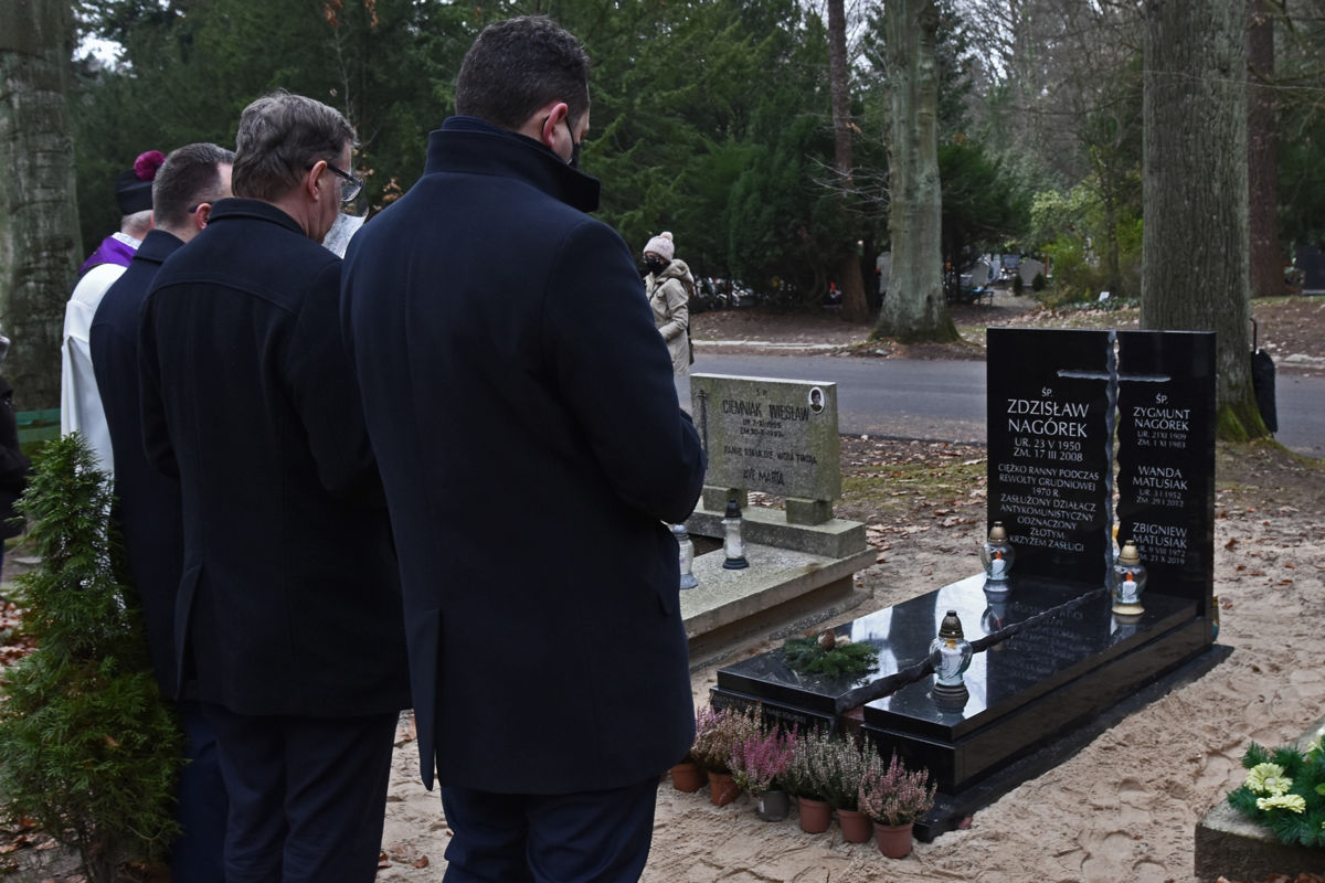 Dnia 15 grudnia 2020 r. o godzinie 10:00, z udziałem dr. Jarosława Szarka, Prezesa Instytutu Pamięci Narodowej, rozpoczęły się pod Krzyżem Męczeństwa Narodu Polskiego, zwanym również Krzyżem Grudnia ’70 na Cmentarzu Centralnym w Szczecinie uroczystości 50. Rocznicy Grudnia 1970 r. w Szczecinie. Oddział IPN w Szczecinie reprezentował dr Paweł Skubisz Dyrektor Oddziału, dr hab. Sebastian Ligarski, Naczelnik Oddziałowego Biura Badań Historycznych IPN w Szczecinie oraz Krzysztof Męciński, Naczelnik Oddziałowego Biura Upamiętniania Walk i Męczeństwa w Szczecinie. Z uwagi na sytuację pandemiczną w kraju, uroczystości odbyły się w ograniczonym gronie. Oddano hołd organizatorom i uczestnikom protestów z grudnia 1970 r. i stycznia 1971 r., złożono kwiaty i zapalono znicze pod pomnikiem upamiętniającym Rewoltę Grudniową, a także na grobach ofiar Grudnia ’70 w Szczecinie oraz na grobie Edmunda Bałuki, jednego z liderów grudniowego strajku z 1970 r. oraz organizatora i przywódcy stoczniowego strajku w styczniu 1971 r. Kwiaty oprócz delegacji IPN złożyli: Juliusz Słowacki, prezes Stowarzyszenia Społecznego Grudzień'70 - Styczeń '71, Grażyna Balicka, sekretarz Zarządu Regionu NSZZ „Solidarność” Pomorza Zachodniego oraz dr Artur Staszczyk, pełnomocnik Wojewody Zachodniopomorskiego ds. Kombatantów i Osób Represjonowanych. Zaprezentowano i dokonano poświęcenia nowego nagrobka zaprojektowanego przez pracowników Oddziałowego Biura Upamiętniania Walk i Męczeństwa IPN w Szczecinie i ufundowanego przez Oddział IPN w Szczecinie dla Zdzisława Nagórka ofiary grudnia '70. Postrzał, który otrzymał Śp. Zdzisław Nagórek w kręgosłup w grudniu 1970 r., sprawił, że jego życie zostało brutalnie złamane. Do końca życia poruszał się na wózku inwalidzkim i był świadkiem historii brutalnej pacyfikacji protestów w grudniu 1970 r.
