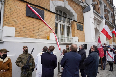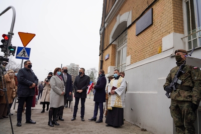 Proboszcz Parafii Katedralnej św. Michała Archanioła i św. Floriana - ks. Piotr Stępniewski poświęcił tablicę.