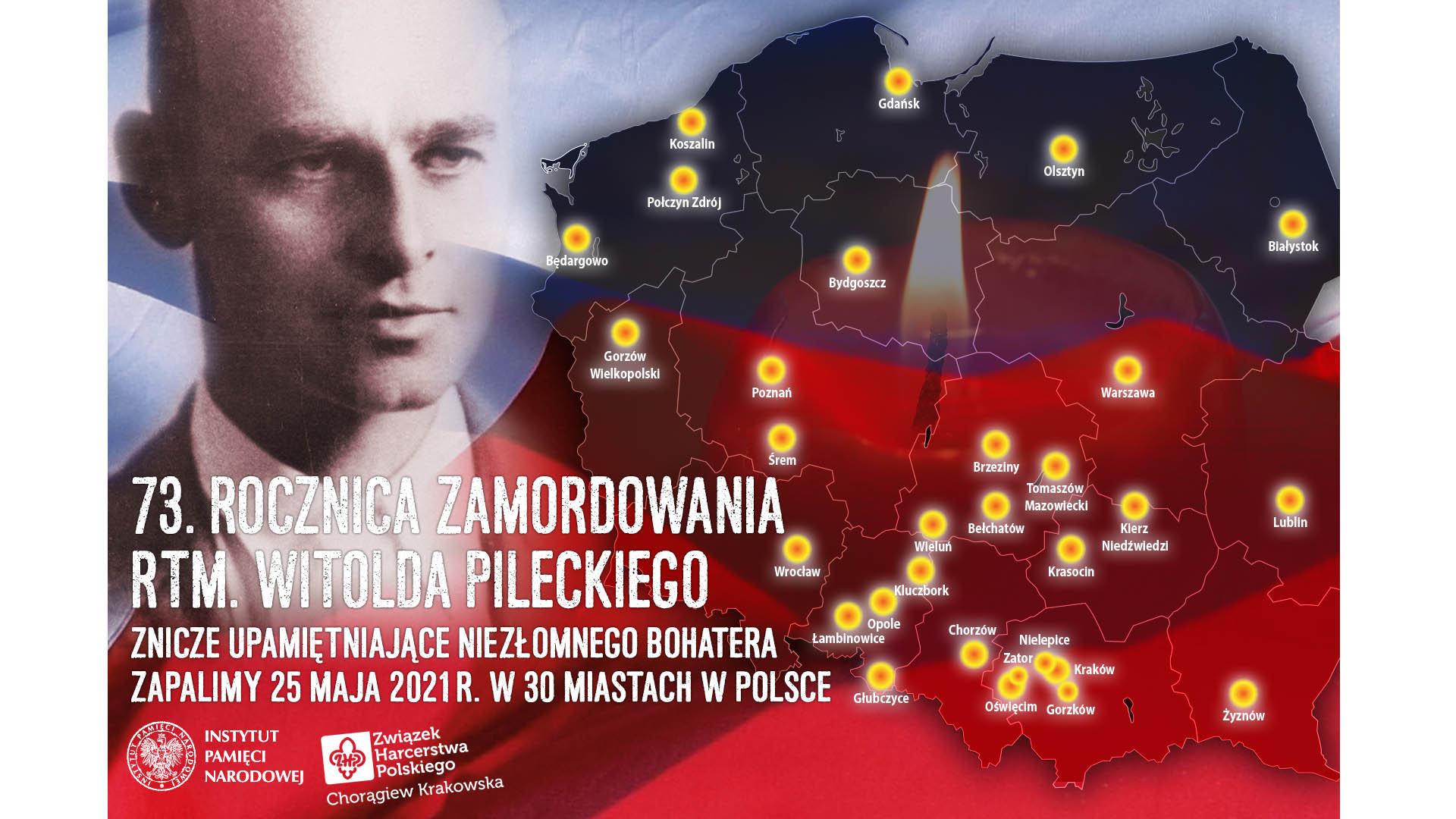 25 maja 1948 r. o godz. 21.30 komuniści zabili jednego z najdzielniejszych obrońców Niepodległej. Ciało rtm. Witolda Pileckiego potajemnie pogrzebano prawdopodobnie na tzw. Łączce (kwatera „Ł” cmentarza Powązkowskiego). Dopiero we wrześniu 1990 r. Sąd Najwyższy uniewinnił rotmistrza i jego towarzyszy. 25 maja 2021 r. o godz. 21.30 w 30 miastach i miejscowościach zapłonęły znicze ku czci rtm. Pileckiego. Wraz z przedstawicielami IPN w uroczystościach wzięły udział m.in. władze wojewódzkie, samorządowe, harcerze, uczniowie szkół im. rtm. Pileckiego.