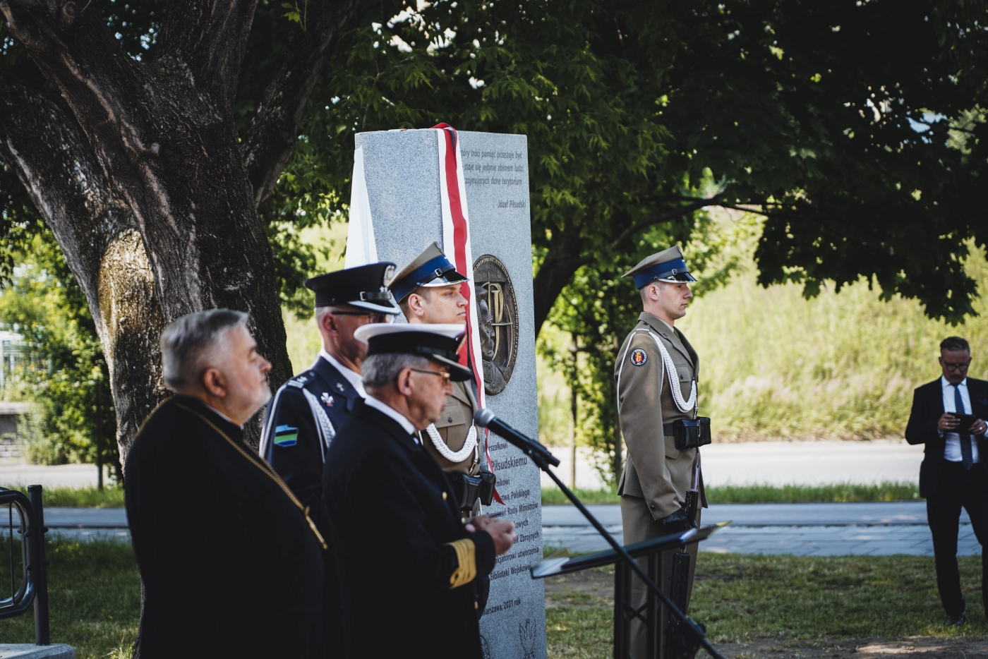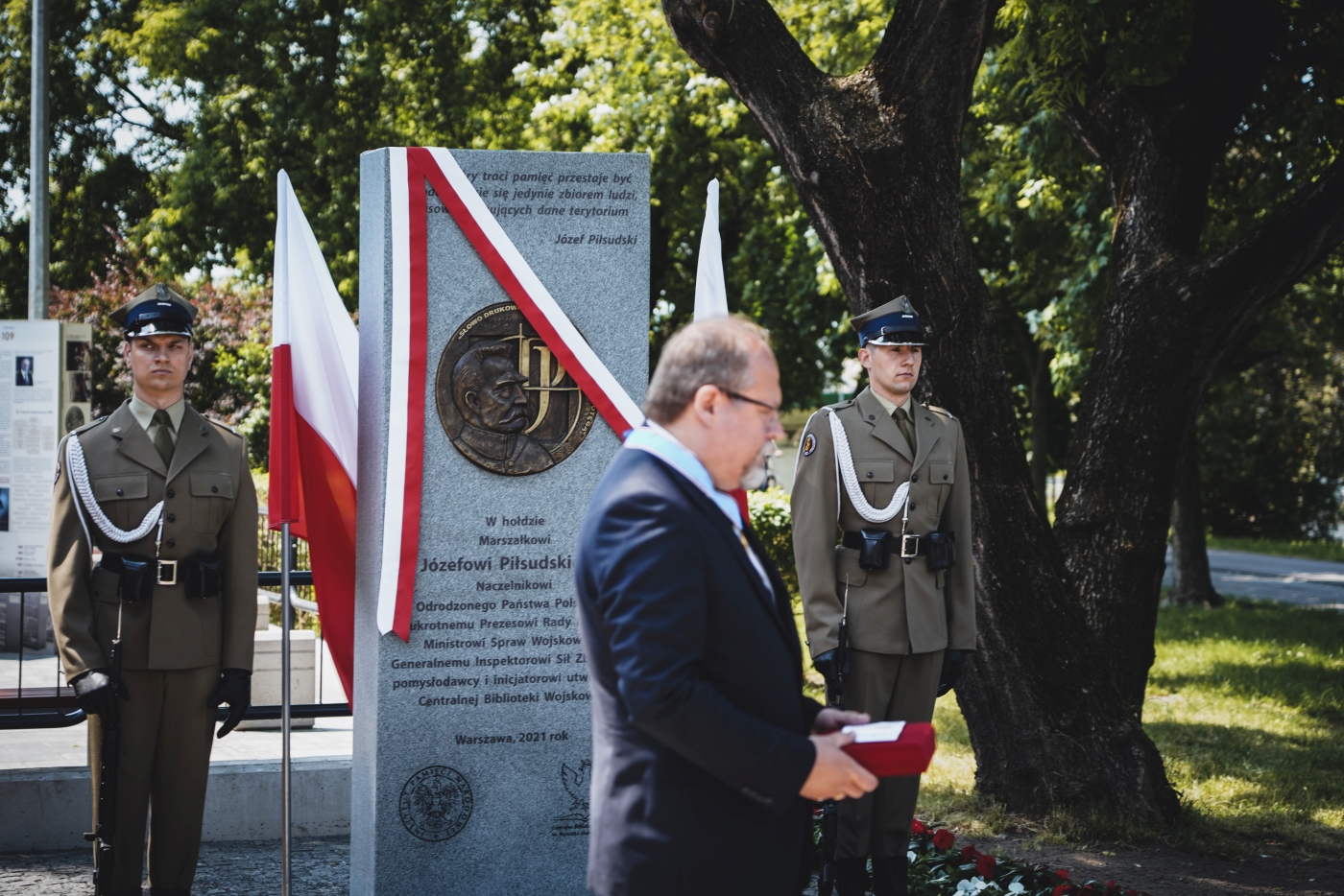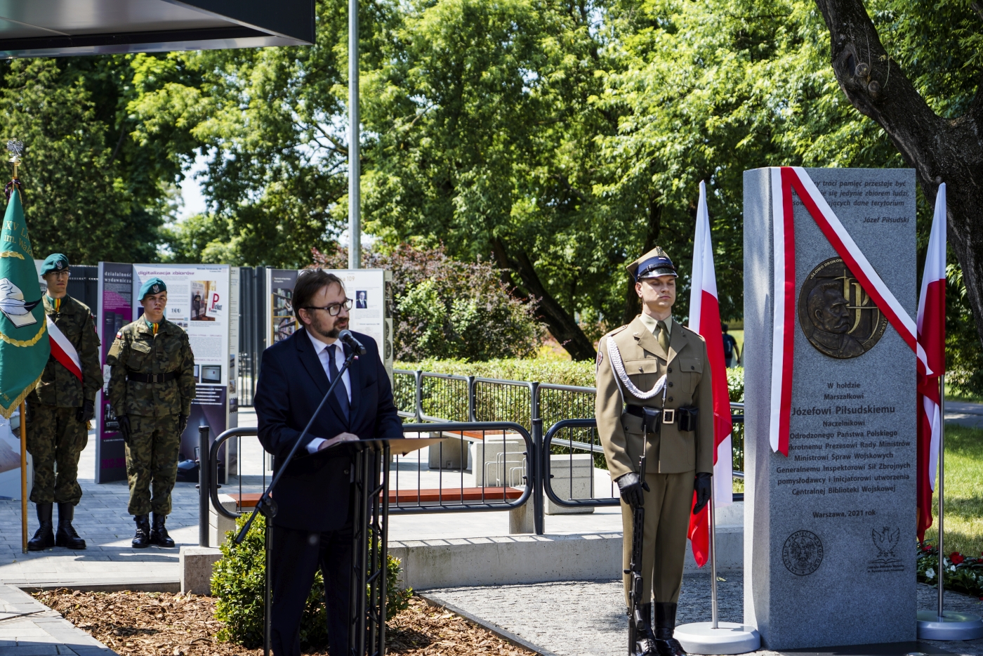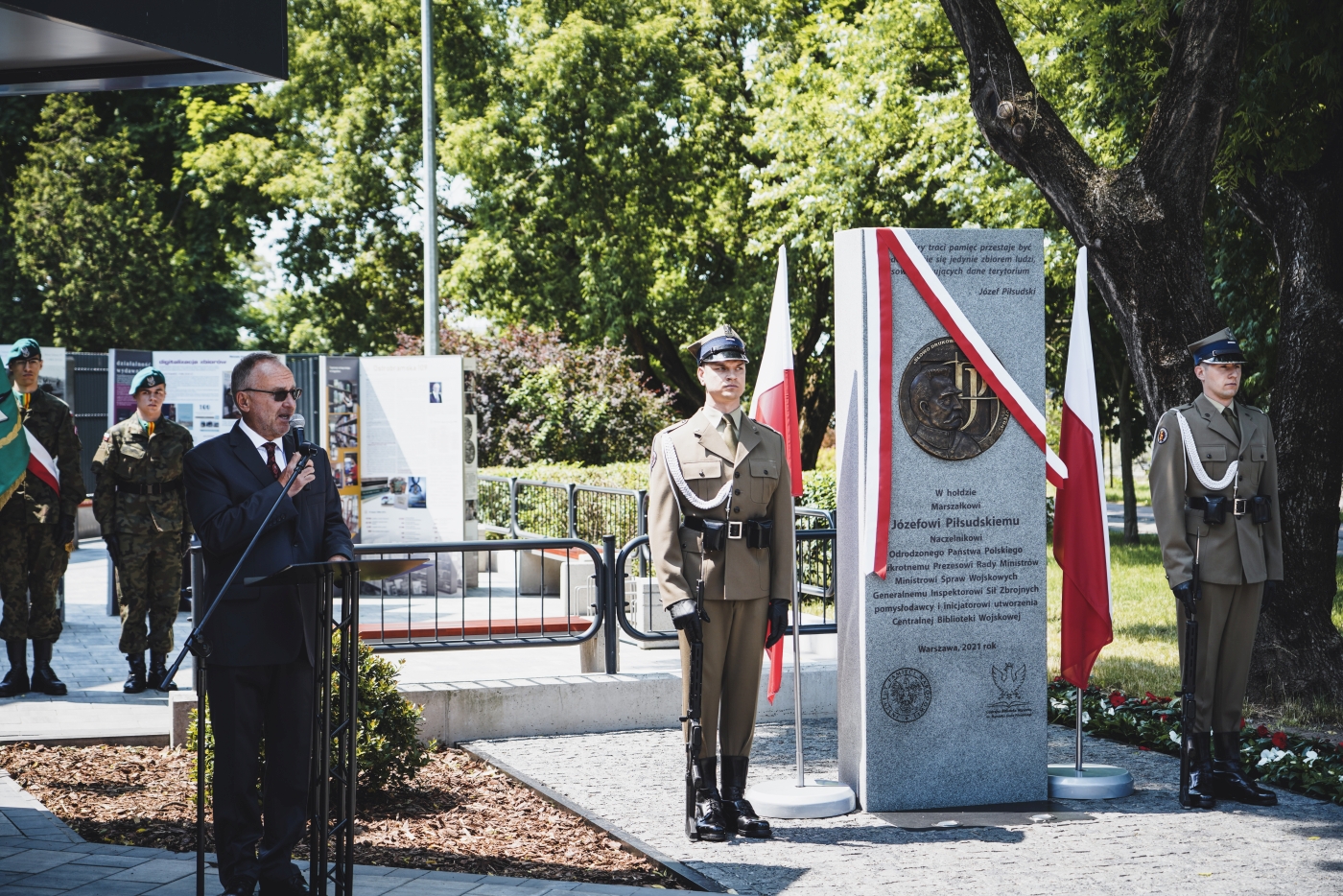 Święto Centralnej Biblioteki Wojskowej, odsłonięcie tablicy upamiętniającej Marszałka Józefa Piłsudskiego – 16 czerwca 2021. Fot. Sławek Kasper (IPN)