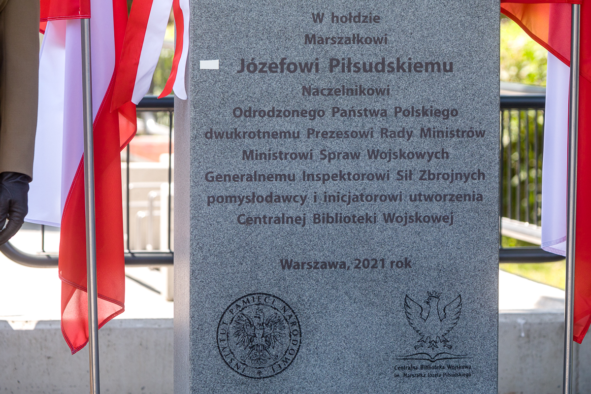 W samo południe 16 czerwca 2021 r. w Warszawie, w ramach obchodów Święta Centralnej Biblioteki Wojskowej, zastępca prezesa Instytutu Pamięci Narodowej dr Mateusz Szpytma wraz z przedstawicielami władz państwowych dokonał odsłonięcia tablicy upamiętniającej Marszałka Józefa Piłsudskiego.