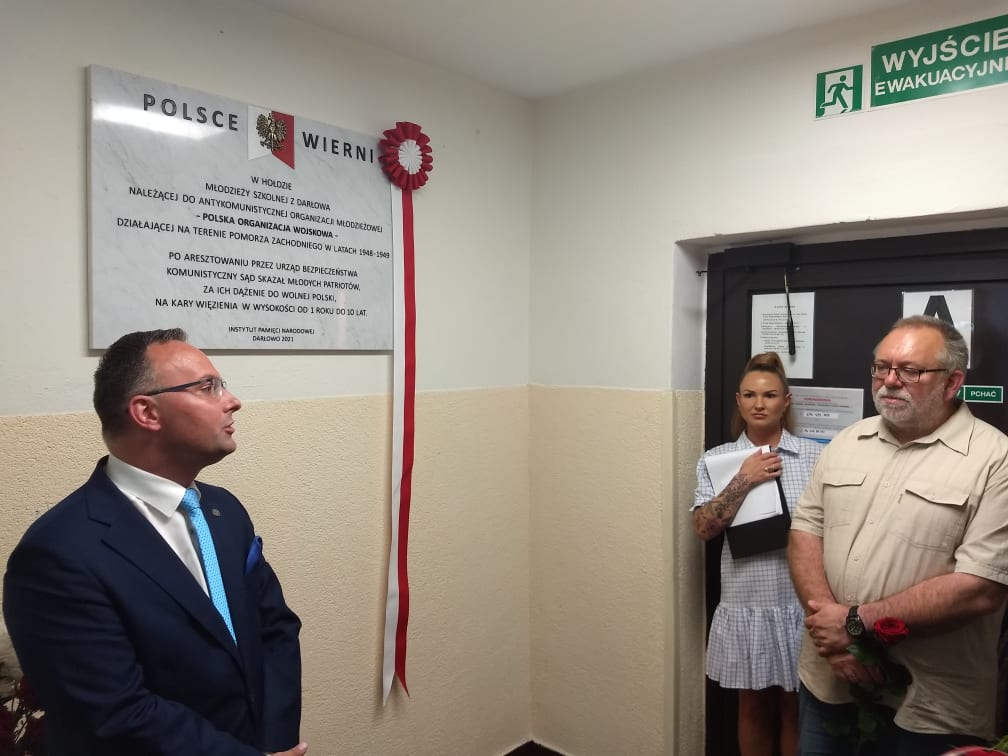 W 2019 r. Instytut Pamięci Narodowej zainicjował ogólnopolski projekt, który ma na celu przywołanie pamięci o młodzieżowych organizacjach niepodległościowych z lat 1944–1956. Wpasowując się w ideę przywrócenia pamięci młodzieży, która zdecydowała się podjąć nierówną walkę z systemem totalitarnym, Oddziałowe Biuro Upamiętniania Walk i Męczeństwa w Szczecinie przygotowało tablicę poświęconą Polskiej Organizacji Wojskowej. Była to jedna z najliczniejszych i najbardziej aktywnych organizacji młodzieżowych działających w okresie powojennym na Pomorzu Zachodnim. W ciągu roku powstało 12 placówek POW, jedna z nich działała w Darłowie. Za cel członkowie organizacji stawiali sobie m.in. ujawnienie sowieckich zbrodni, przeciwdziałanie sowietyzacji polskiego społeczeństwa czy przygotowanie młodzieży do wybuchu III wojny światowej. Ich działalność skupiała się przede wszystkim na stronie propagandowej: rozwieszaniu ulotek i plakatów o treści antykomunistycznej, nielegalnym słuchaniu radia i magazynowaniu broni. Za swoją walkę z ustrojem totalitarnym członkowie POW zapłacili kilkuletnimi wyrokami więzienia.