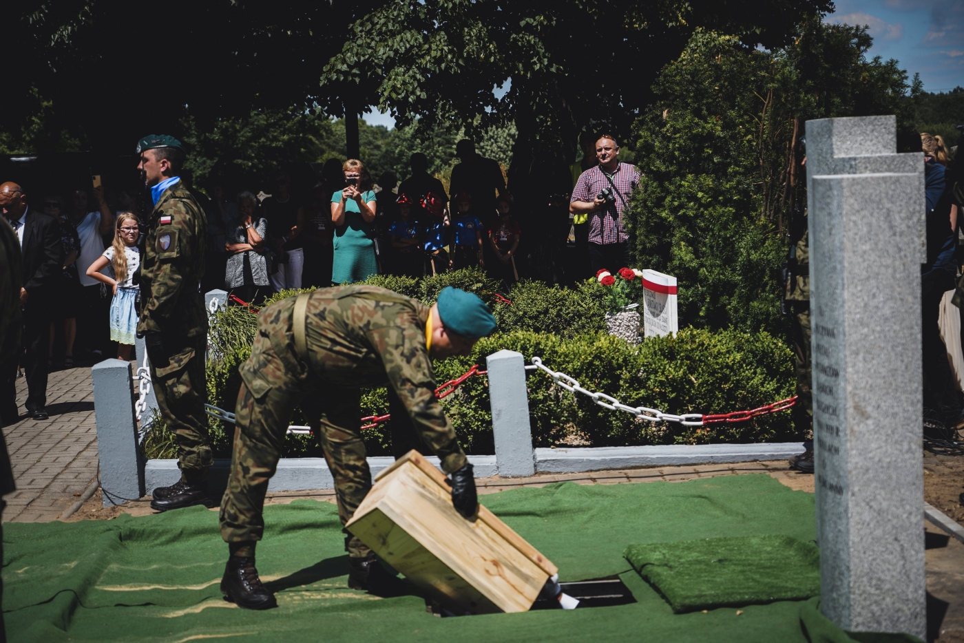 Ceremonię pochówku rozpoczęło odśpiewanie hymnu państwowego. Po dokonaniu końcowych obrzędów pogrzebowych przez ks. proboszcza, trumny Powstańców zostały złożone przez żołnierzy do grobu. Na cześć poległych kompania oddała salwę honorową, a orkiestra odegrała utwór „Śpij kolego”.