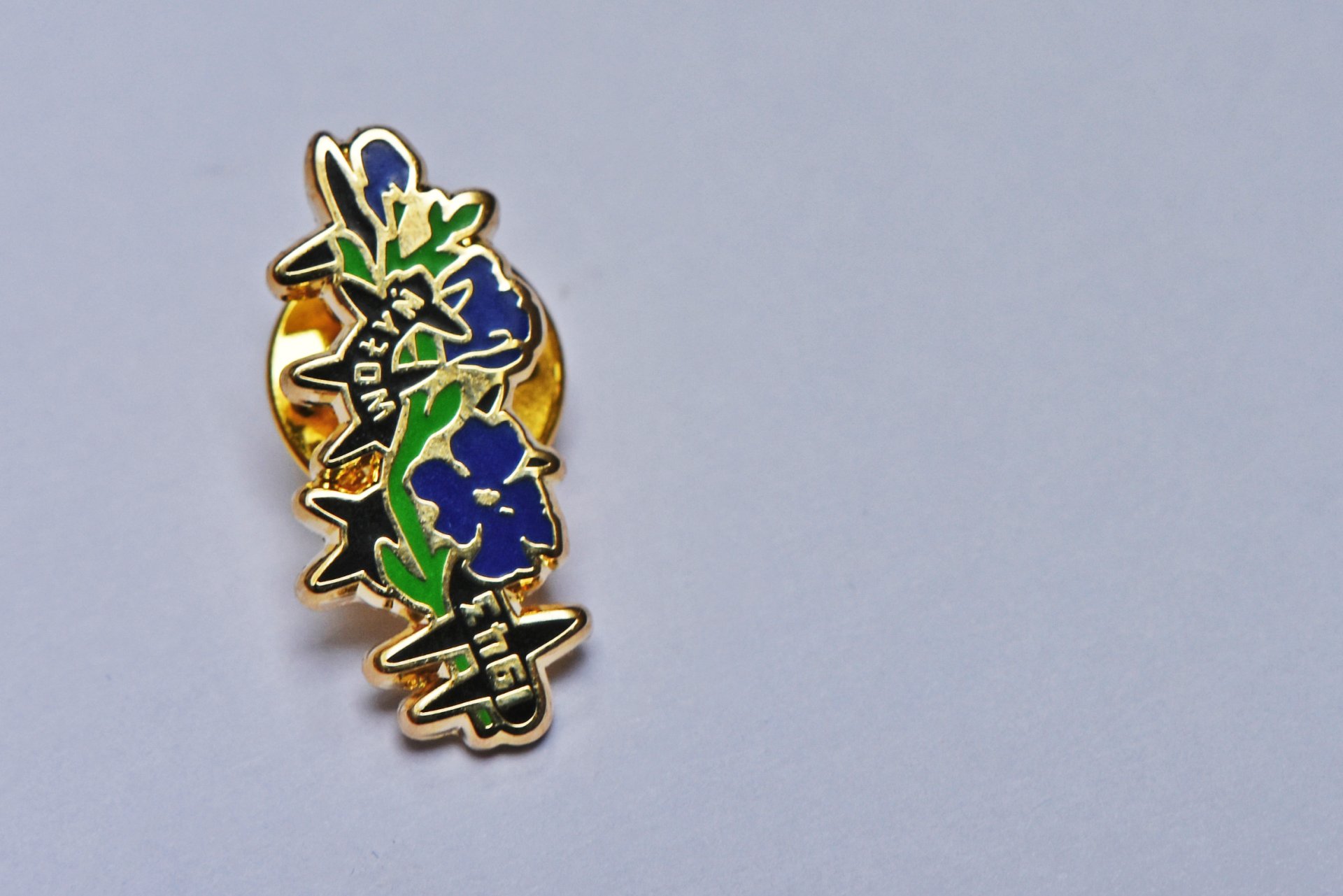 Kwitnie niezwykle krótko, dlatego stał się symbolem przerwanego życia tysięcy ofiar ludobójstwa na Kresach. Trzy kwiaty o różnym stopniu rozwinięcia symbolizują trzy pokolenia, które uległy ludobójstwu - dzieci, w tym te nienarodzone, wyrywane z łon matek, dorosłych i osoby starsze. Kolor niebieski kwiatów kojarzy się z harmonią, ukojeniem ale też ze smutkiem i melancholią, wpisując się w przeżywanie bólu po stracie bliskich. Czarny, oplatający len cierń, symbolizuje ból cierpienie i mękę, a także w wielu przypadkach brak możliwości ucieczki oraz śmierć zadaną przez kogoś bliskiego – sąsiada, a nierzadko członka dalszej rodziny. Złoty metal znaczka to odniesienie do koloru pól w okresie żniw, kiedy nastąpiła kulminacja eksterminacji ludności polskiej na Kresach.