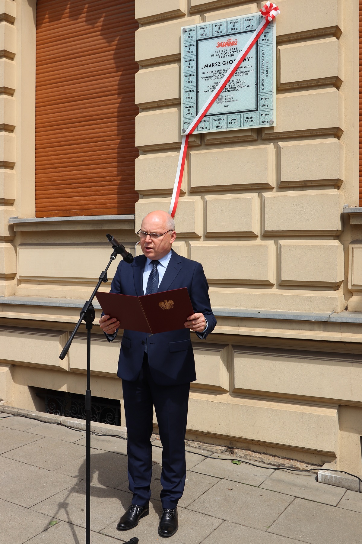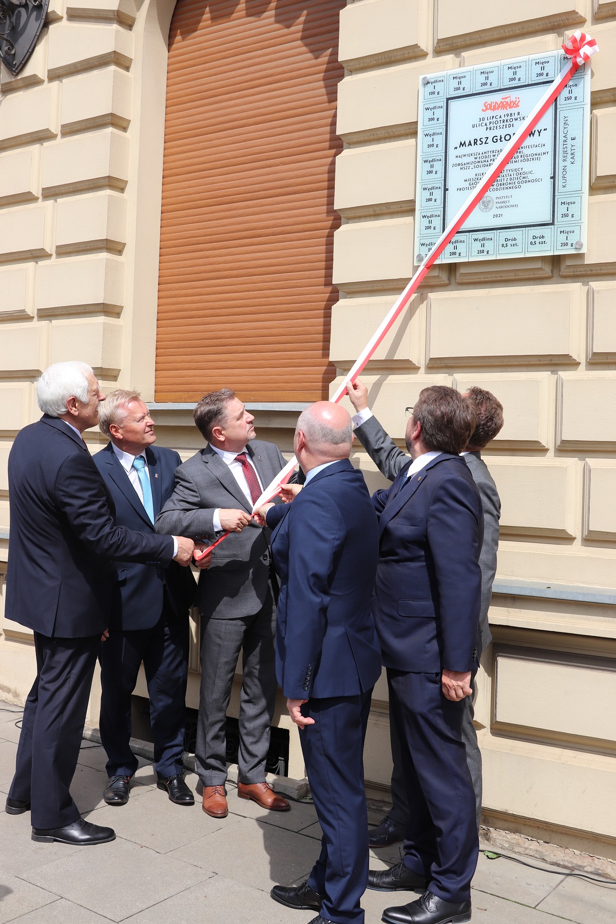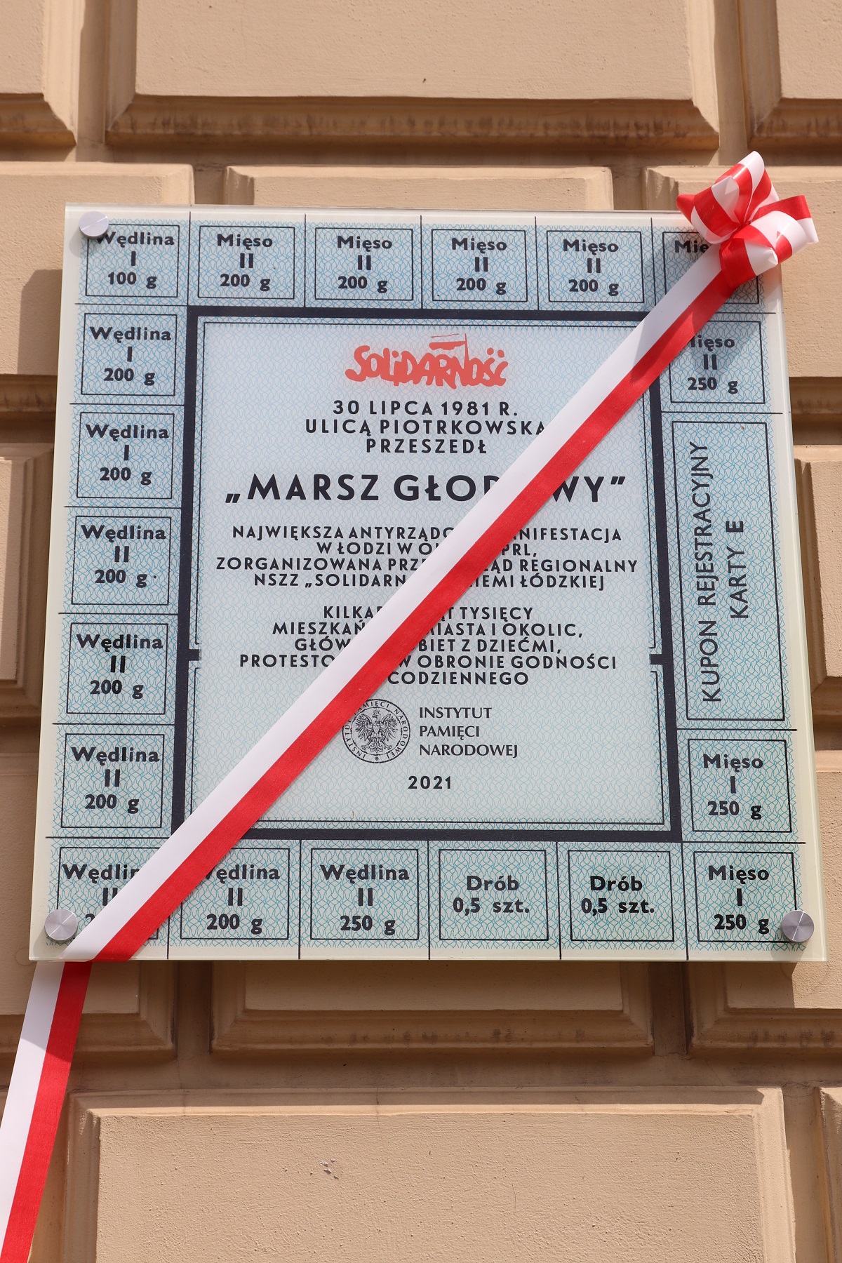 15 lipca 2021 r. w Łodzi, przy ul. Piotrkowskiej 258/260 -siedziba Centrum Dydaktyczno-Konferencyjnego im. Alcide De Gasperi przy Instytucie Europejskim, odbyło się uroczyste odsłonięcie tablicy upamiętniającej "Marsz Głodowy"