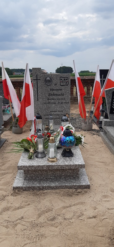 Po mszy, w asyście sztandaru szkolnego, zorganizowano przemarsz mieszkańców oraz przybyłych gości na pobliski cmentarz celem poświęcenia, modlitwy oraz złożenia kwiatów i zniczy przy nagrobku bohatera. Krótki biogram Zielonackiego przybliżyła zebranym p. Ewa Sielicka, emerytowana nauczycielka historii ze szkoły w Jeziorkach, regionalistka, wieloletnia opiekunka grobu, a także jedna z głównych inicjatorów jego remontu i godnego upamiętnienia.