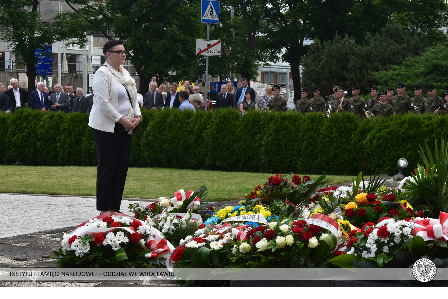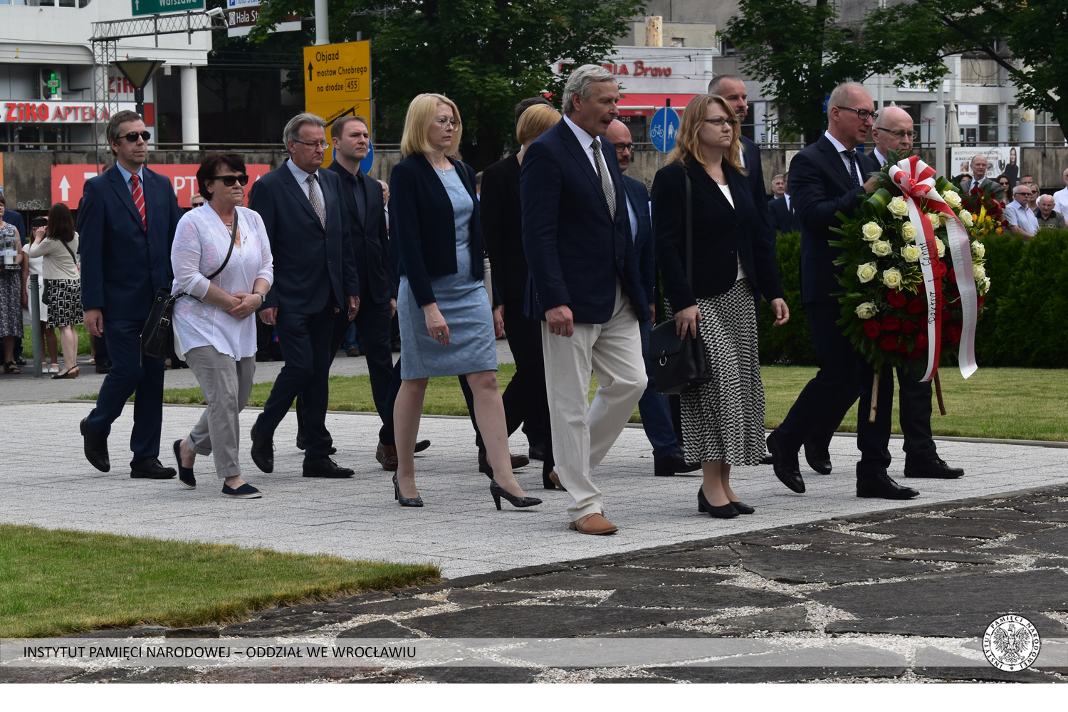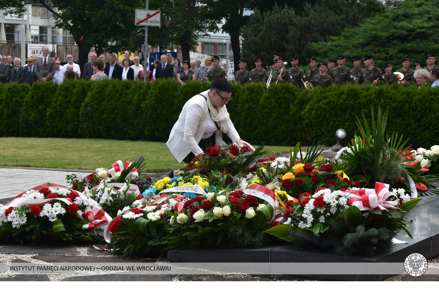Następnie zgromadzeni złożyli kwiaty pod pomnikiem na terenie Politechniki Wrocławskiej. Oddział Instytutu Pamięci Narodowej we Wrocławiu reprezentowała dr Joanna Hytrek-Hryciuk z Oddziałowego Biura Upamiętniania Walk i Męczeństwa IPN we Wrocławiu.