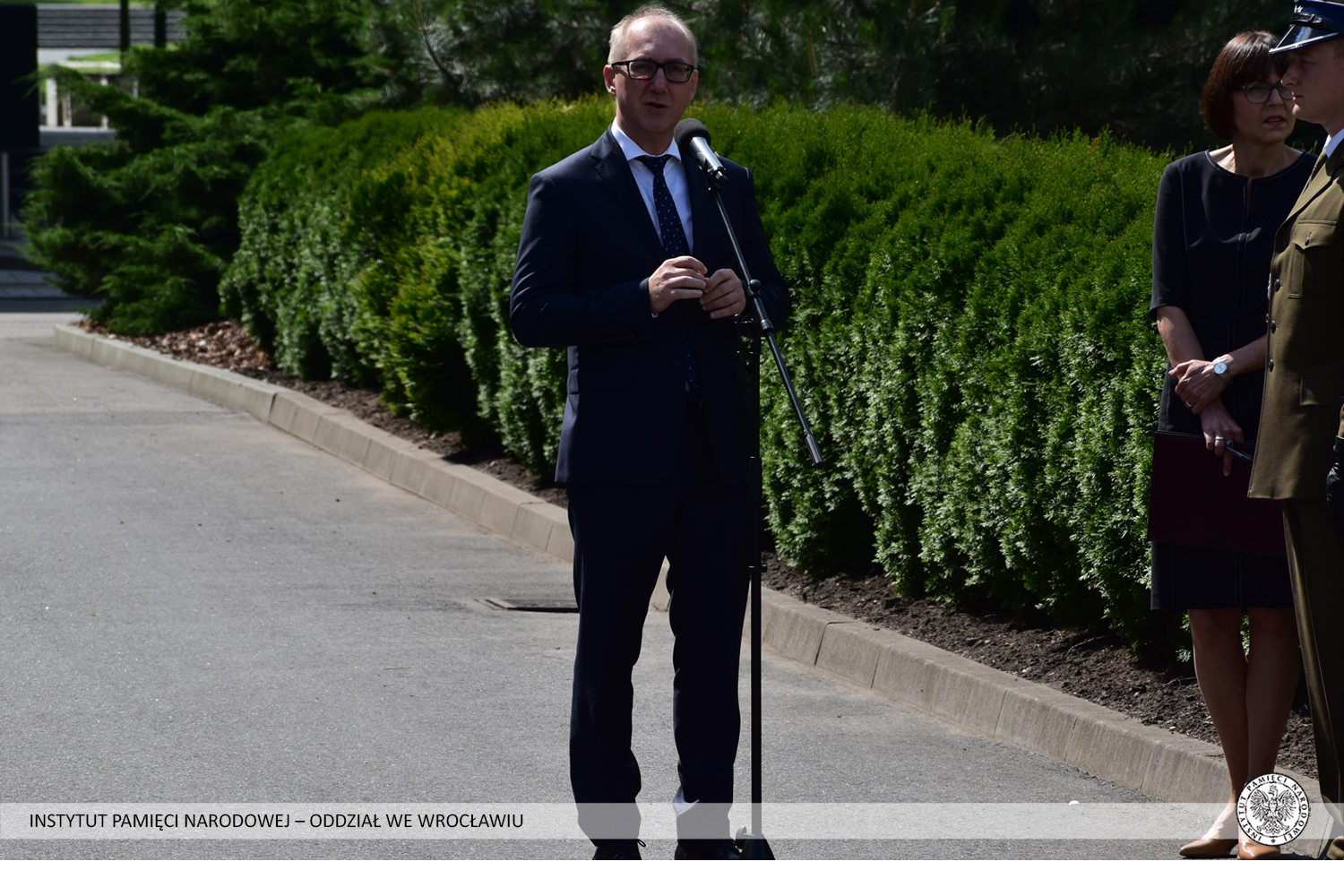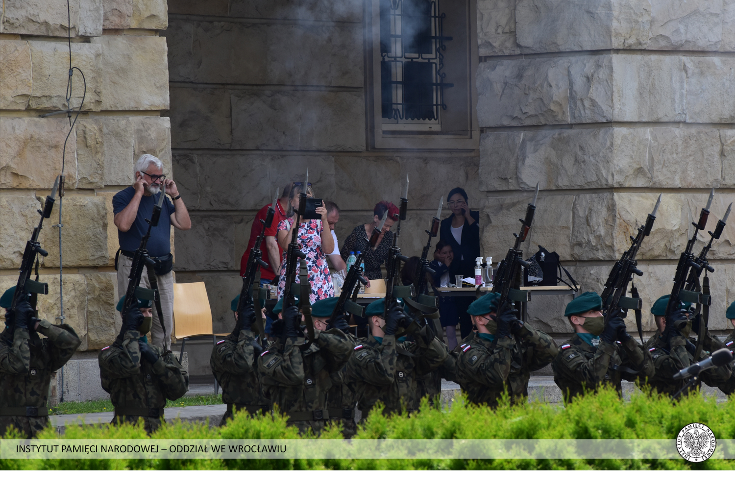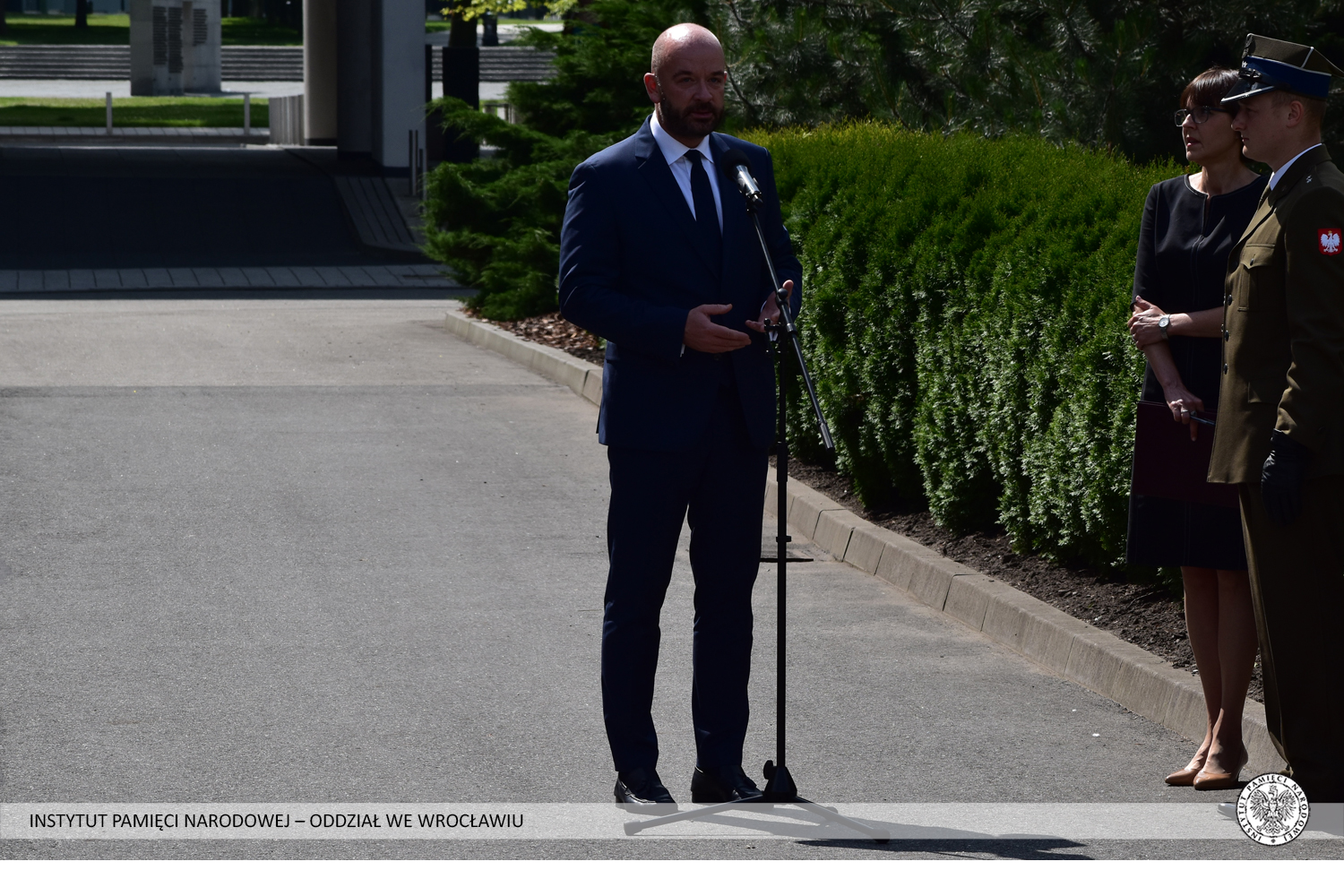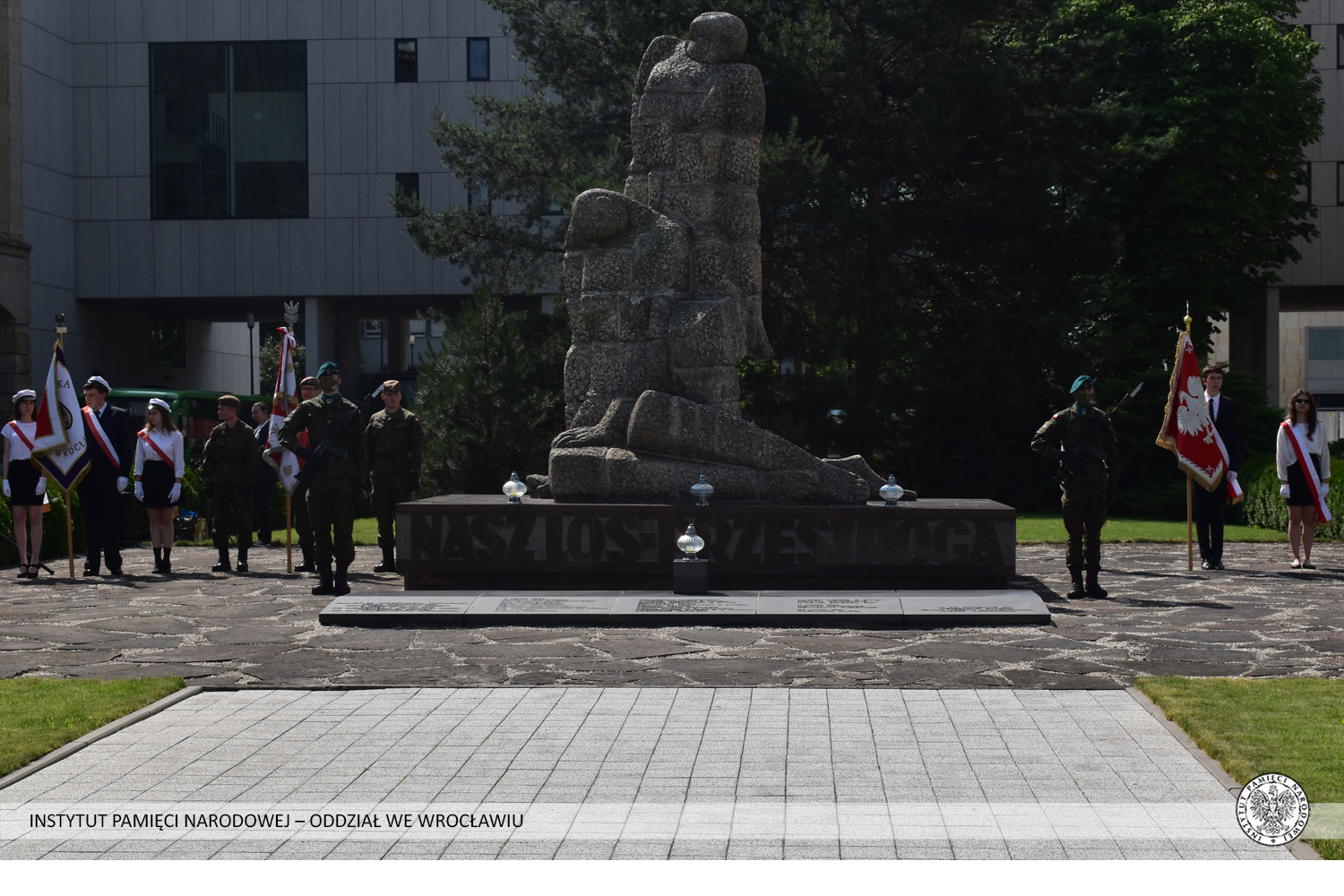 Następnie zgromadzeni złożyli kwiaty pod pomnikiem na terenie Politechniki Wrocławskiej. Oddział Instytutu Pamięci Narodowej we Wrocławiu reprezentowała dr Joanna Hytrek-Hryciuk z Oddziałowego Biura Upamiętniania Walk i Męczeństwa IPN we Wrocławiu.