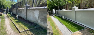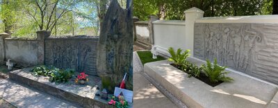 Remont obejmował oczyszczenie z zabrudzeń całości obiektu (cokołu, płaskorzeźby, krzyży) oraz fragmentów zamalowanych granatową farbą, odtworzenie i zakonserwowanie liter, dezynfekcję preparatami przeciwgrzybiczymi/biobójczymi oraz zabezpieczenie hybrydowo i paroprzepuszczalne, uzupełnienie tynków zwykłych zewnętrznych oraz daszków na ogrodzeniu, wymianę betonowych krawężników na nowe z granitu strzegomskiego, a także oczyszczenie ziemi z chwastów oraz zasianie trawników i posadzenie bluszczu.