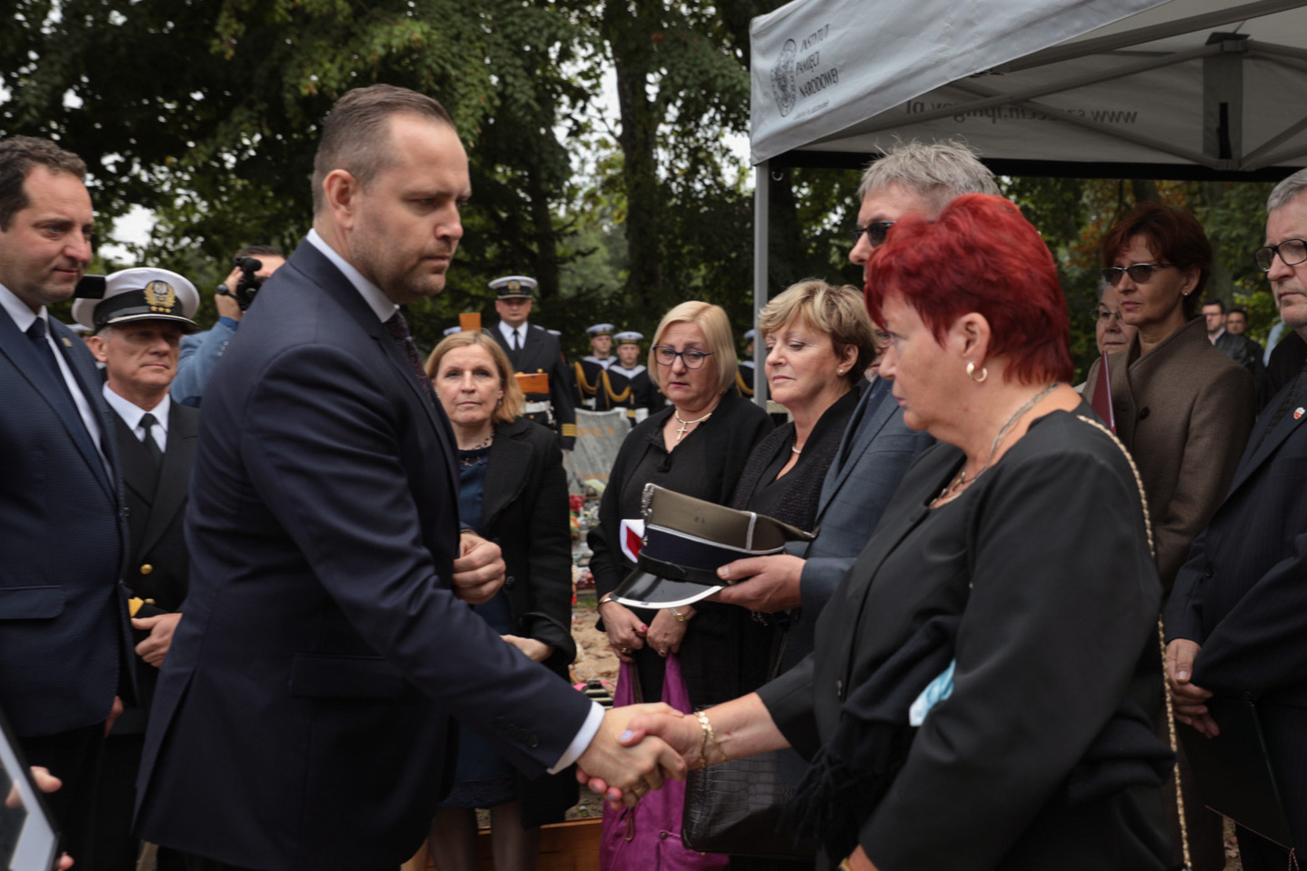 Przed złożeniem szczątków Antoniego Wąsowicza do grobu jego rodzina odebrała flagę państwową z rąk komandora Jarosława Kuklińskiego, zastępcy dowódcy 8 Flotylli Obrony Wybrzeża, oraz rogatywkę oficerską i fotografię z rąk dr. Karola Nawrockiego, prezesa IPN.