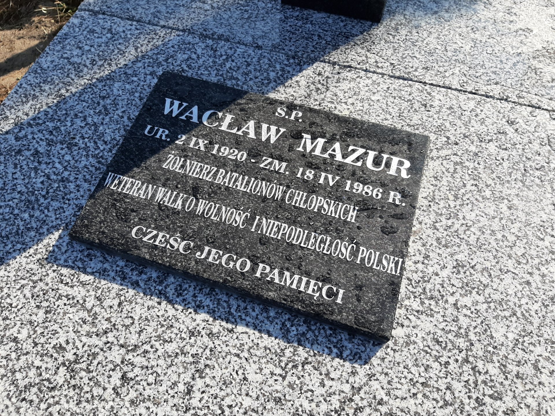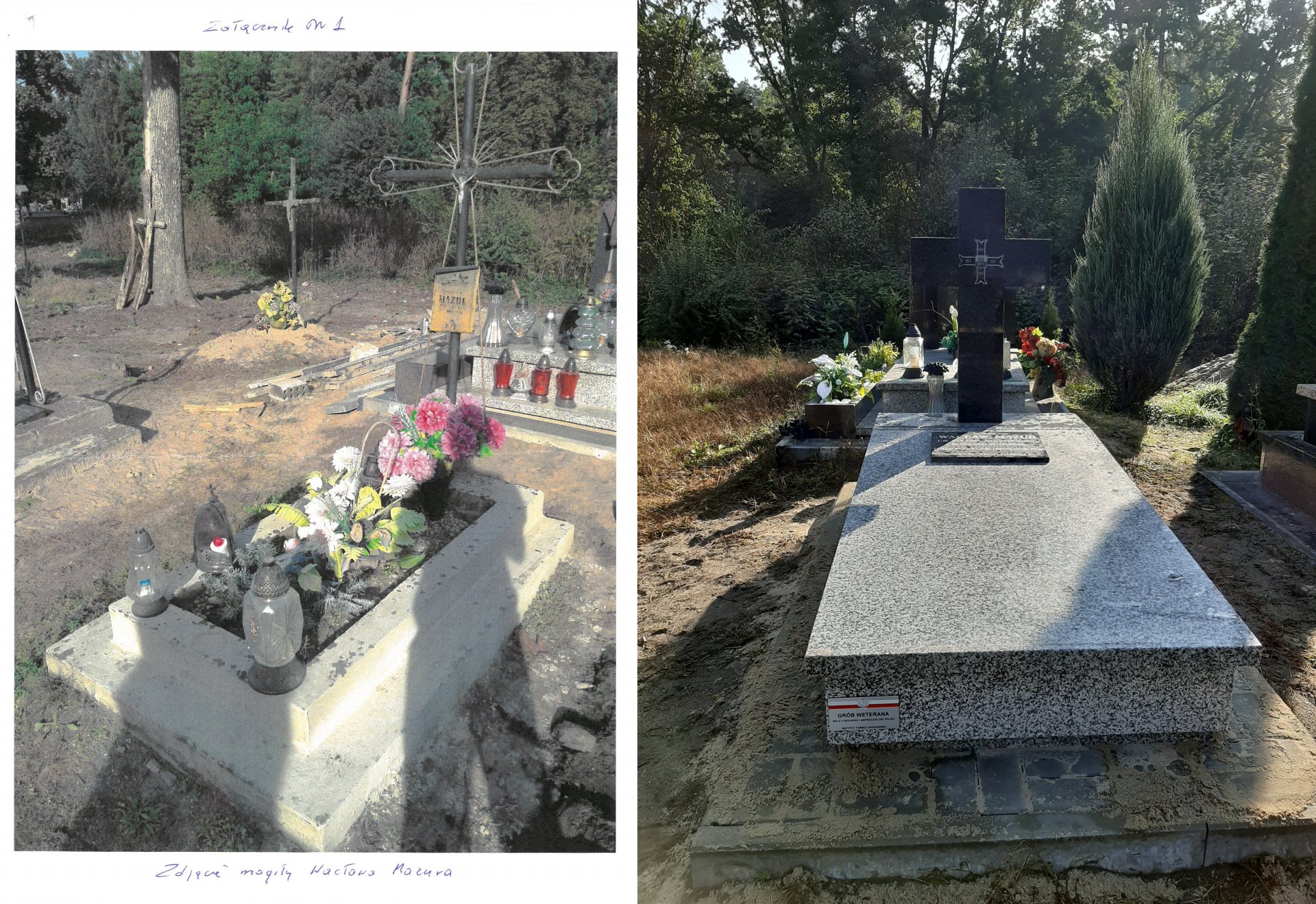 Prace polegały na usunięciu starej betonowej płyty i zastąpienie jej nowym, granitowym pomnikiem, otoczonym opaską z kostki. Na skrzyżowaniu belek krzyża umieszczono krzyż Batalionów Chłopskich a inskrypcja memoratywna informuję że śp. Wacław Mazur był żołnierzem tej formacji.
