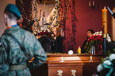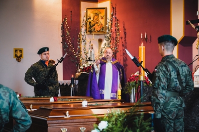 "Jest bardzo ważne, abyśmy dbali o miejsca pamięci, abyśmy dbali o mogiły. One są świadectwem, argumentem przeciwko przeinaczaniu historii. Chciałbym serdecznie podziękować wszystkim, którzy zaangażowali się w to, abyśmy mogli dziś pożegnać tych trzech żołnierzy Wojska Polskiego, którzy oddali życie broniąc Ojczyzny."