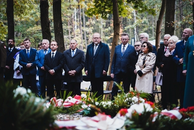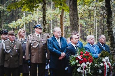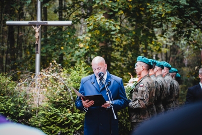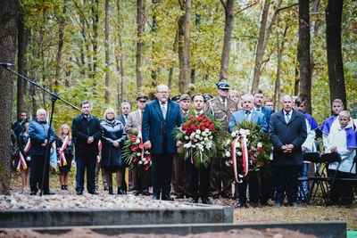 Melodia Hymnu Rzeczypospolitej Polskiej rozpoczęła uroczystości przed mogiłą. W czasie przemówienia dyrektor Adam Siwek podkreślił wagę takich miejsc pamięci jak ta przy leśnej drodze: