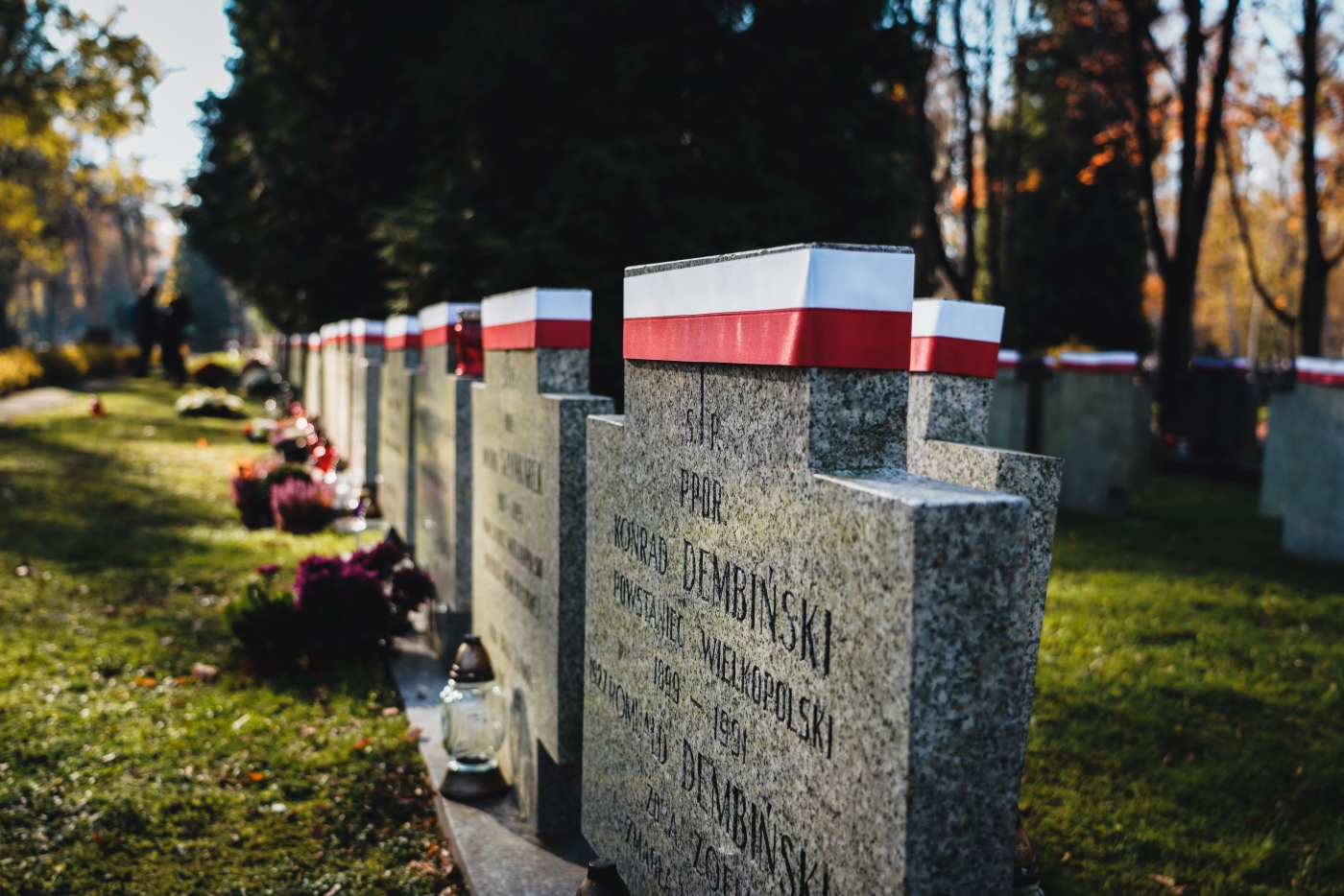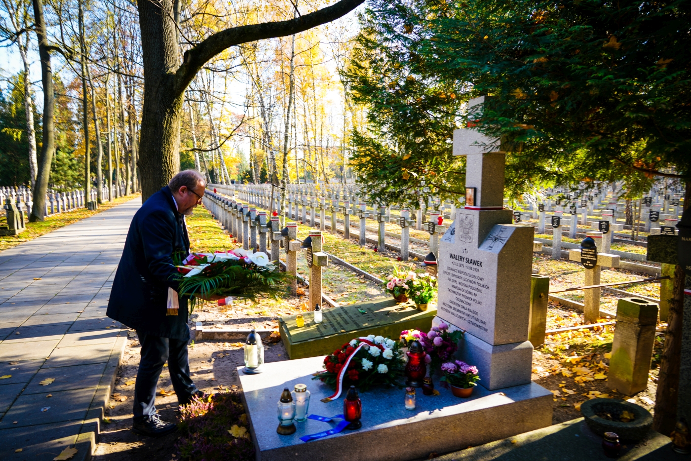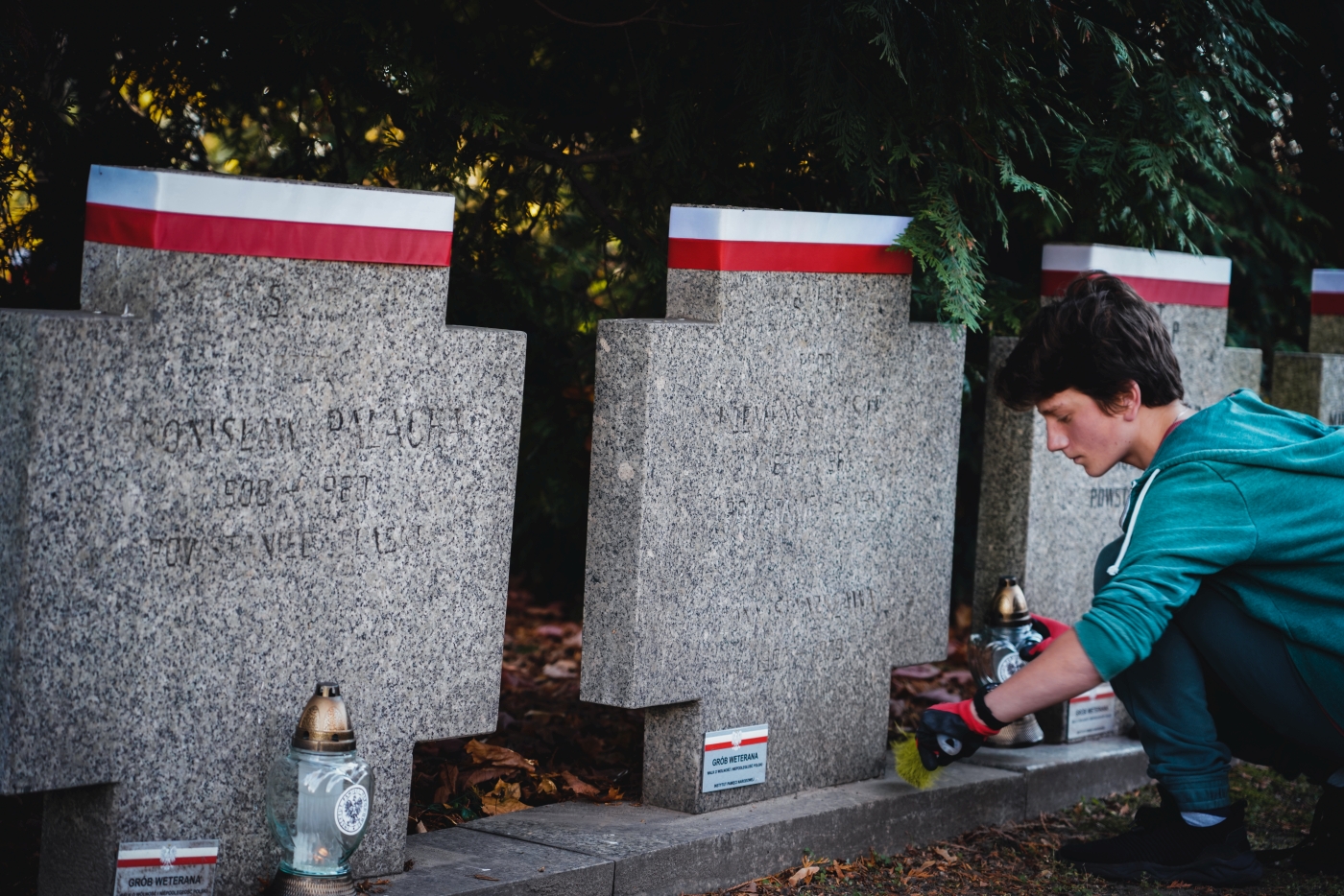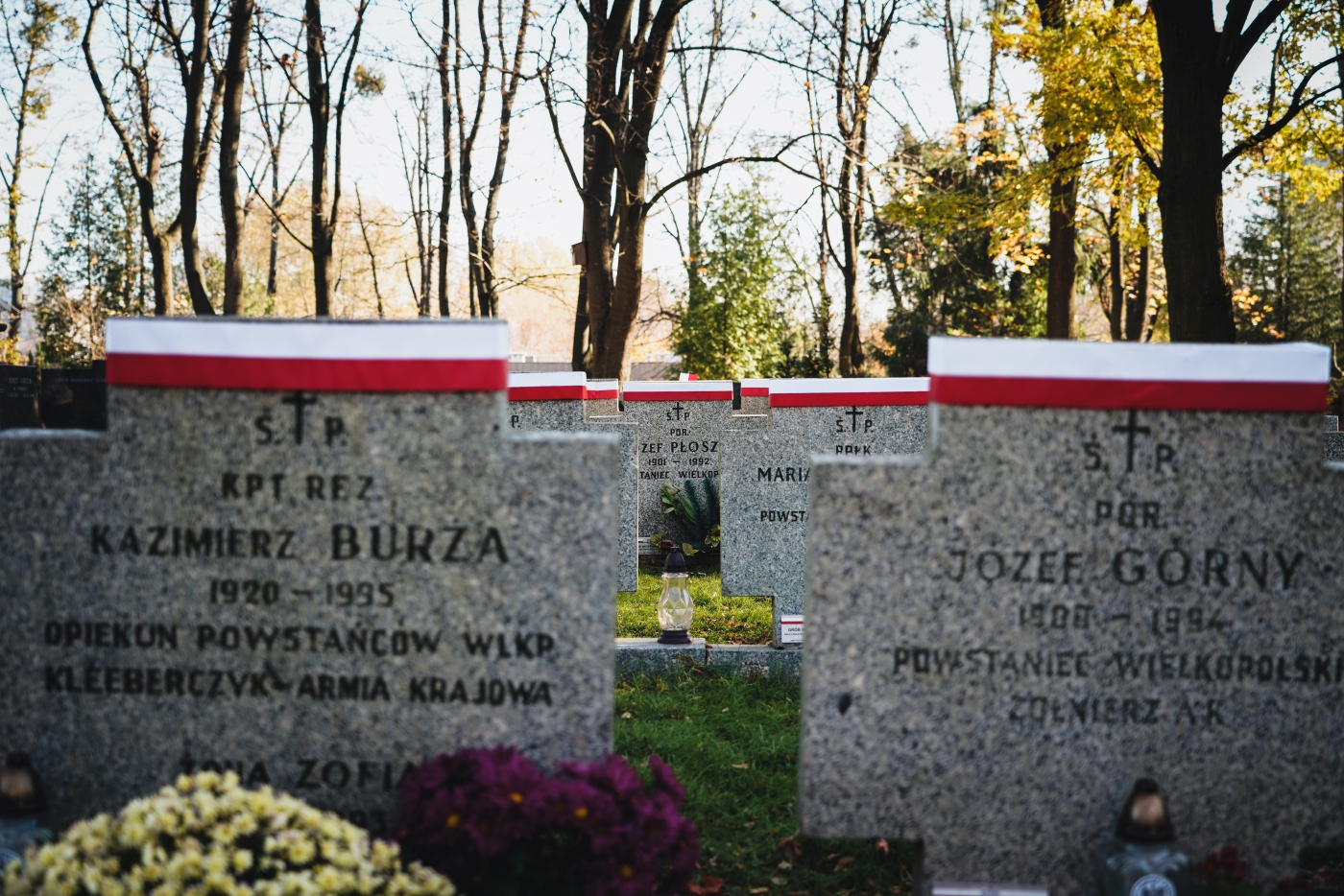 Dyrektor Adam Siwek złożył także wieńce i zapalił znicze na mogiłach weteranów, oddając hołd wszystkim tym którzy służyli niepodległej Rzeczypospolitej. Wiązanki kwiatów złożone zostały na grobach: