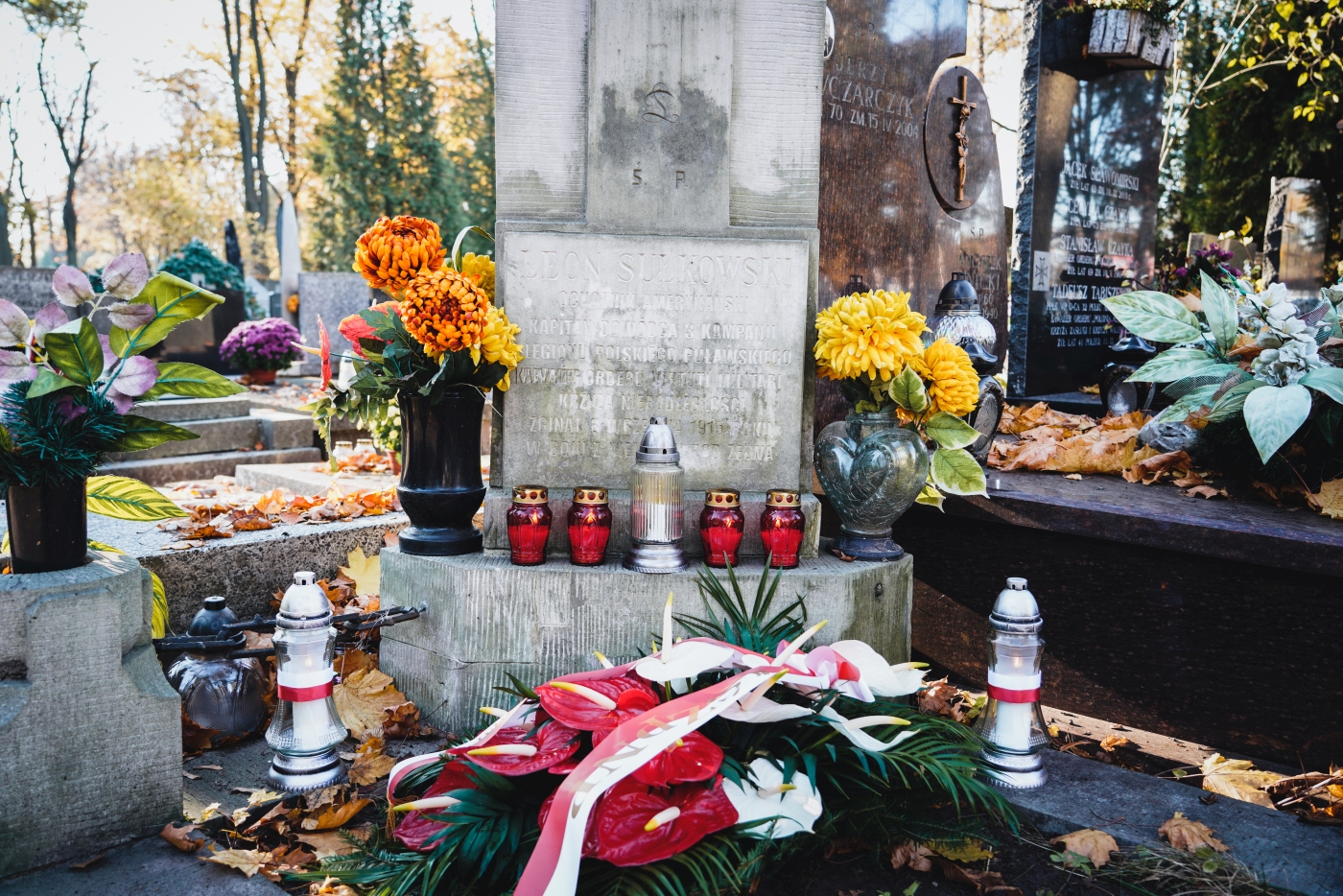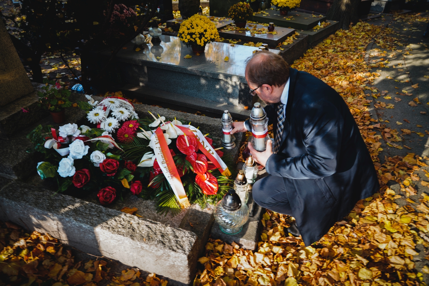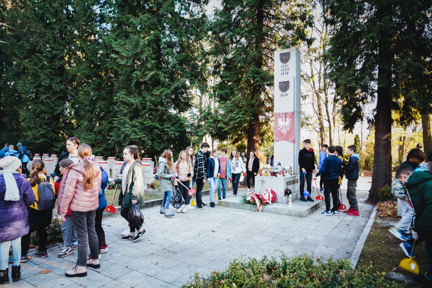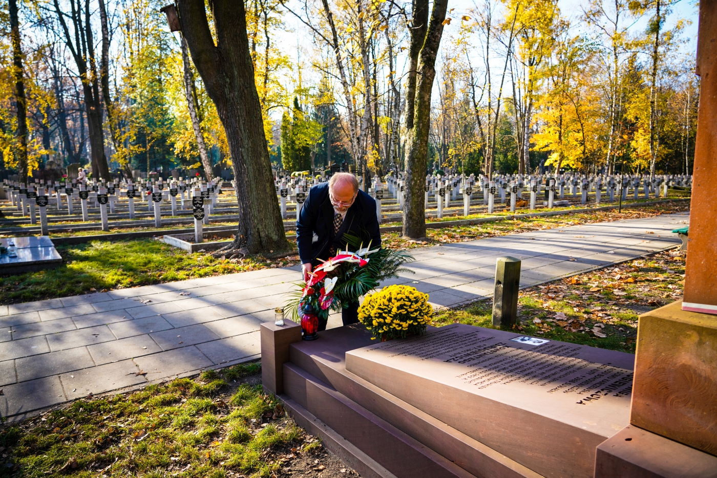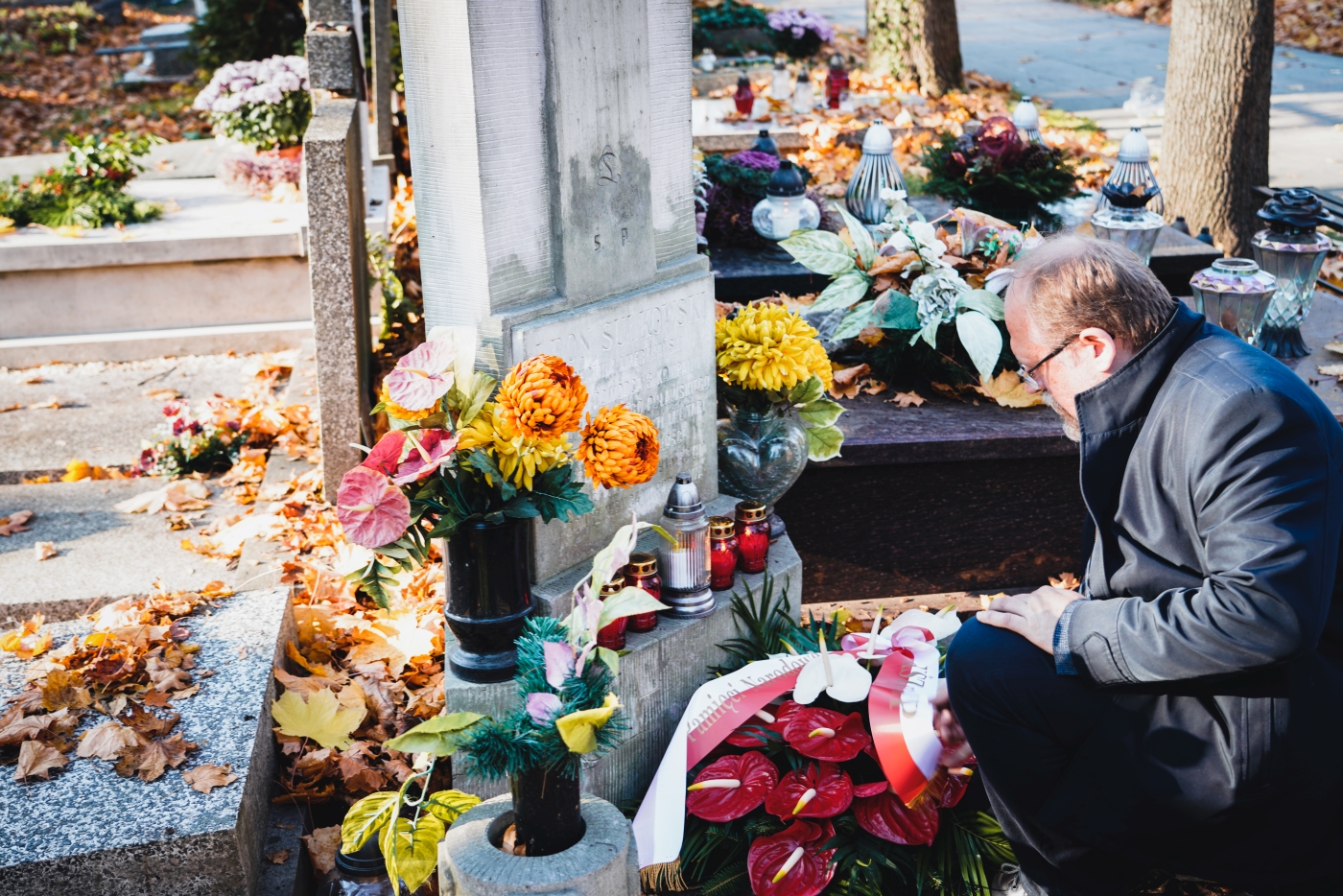 Dyrektor Adam Siwek złożył także wieńce i zapalił znicze na mogiłach weteranów, oddając hołd wszystkim tym którzy służyli niepodległej Rzeczypospolitej. Wiązanki kwiatów złożone zostały na grobach: