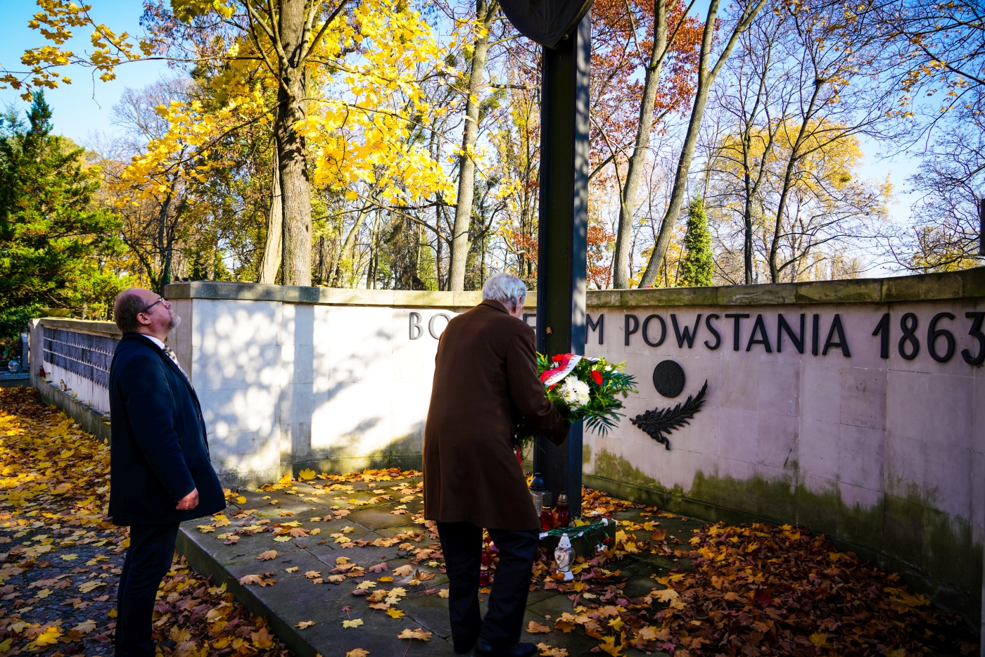 Prof. dr hab. Jerzy Eisler dyrektor Oddziału IPN w Warszawie razem z dyrektorem BUWiM Adamem Siwkiem złożyli wieńce przed pomnikiem powstańców śląskich i wielkopolskich oraz przed krzyżem powstańców styczniowych.