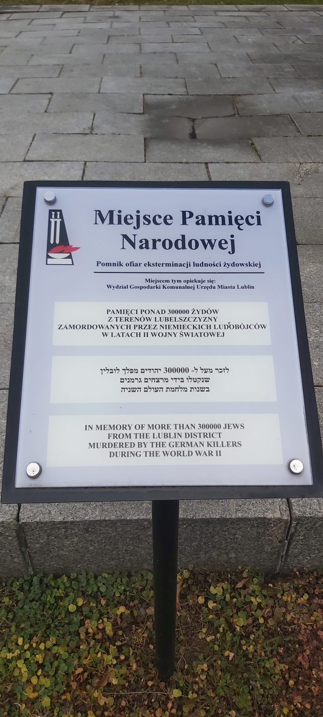 Pomnik przy zbiegu ulic Niecałej i Radziwiłłowskiej poświęcony jest nie tylko Żydom zamordowanym w Lublinie, ale także tym, którzy ponieśli śmierć w niemieckich obozach i miejscach straceń na terenie Lubelszczyzny.