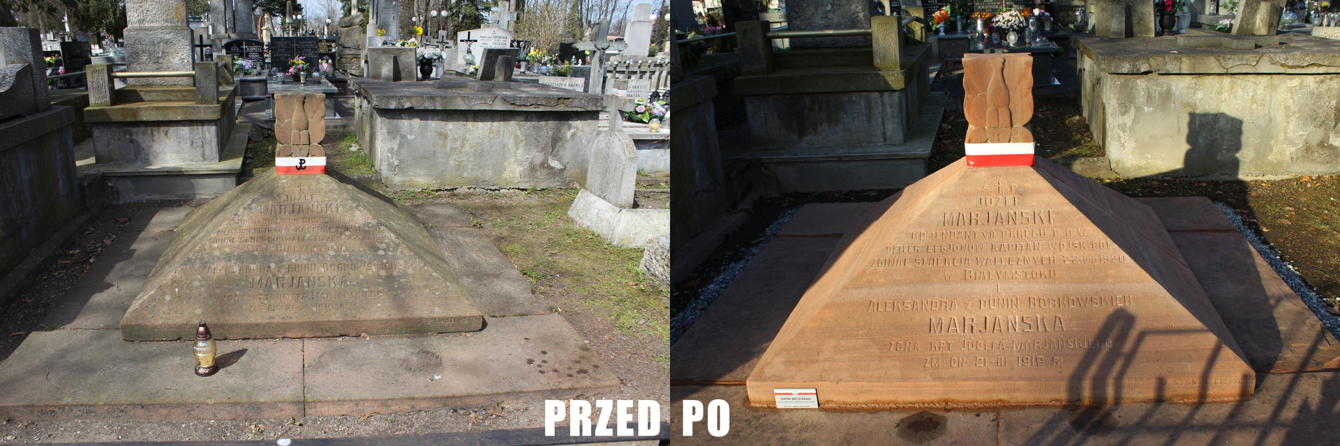 Zakończyły się prace związane z remontem pomnika na grobie uczestnika wojny polsko-bolszewickiej mjr Józefa Bronisława Marjańskiego oraz Aleksandry Marjańskiej, pochowanych na cmentarzu rzymskokatolickim przy ul. Limanowskiego w Radomiu (grób nr 20058 kw. Leg/1/19).